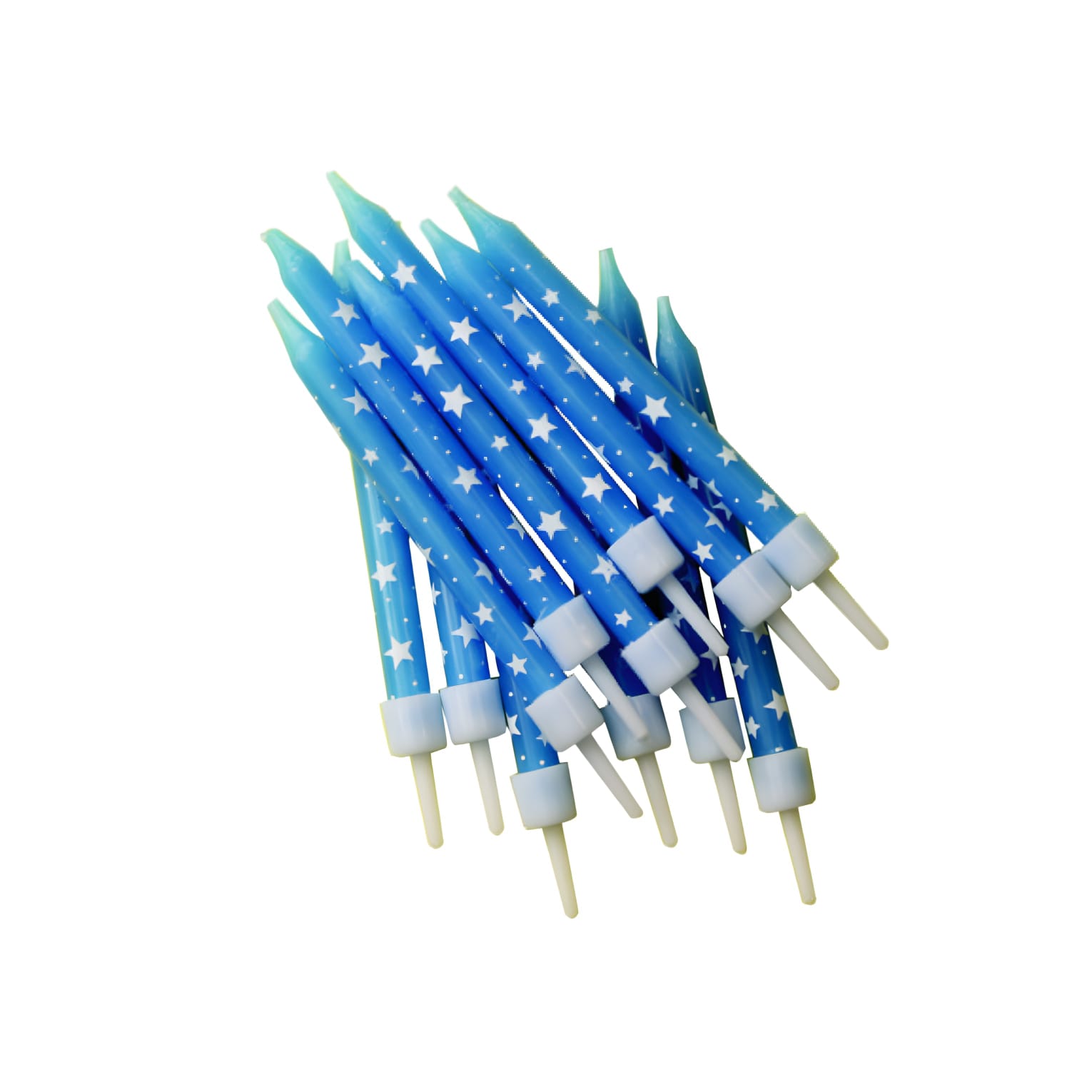 Dê um toque especial e brilhante ao seu bolo com estas velas azuis decoradas com estrelas brancas. Ideais para festas infantis, temas espaciais ou celebrações em tons de azul.