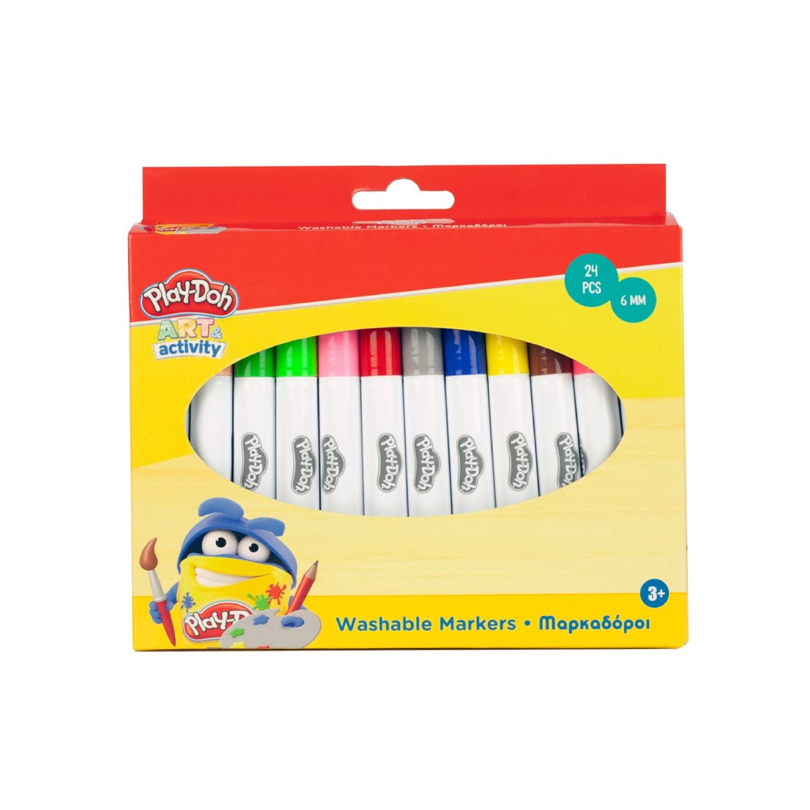 🎨 Marcadores de Feltro Grossos Laváveis Play-Doh – 24 Unidades (Ponta 6 mm) Liberta a imaginação com os Marcadores de Feltro Play-Doh! Este conjunto inclui 24 cores vibrantes e laváveis, ideais para crianças explorarem o mundo das cores de forma divertida e segura. Com uma ponta grossa de 6 mm, são perfeitos para pintar grandes áreas, traçar linhas fortes e criar desenhos cheios de expressão.
