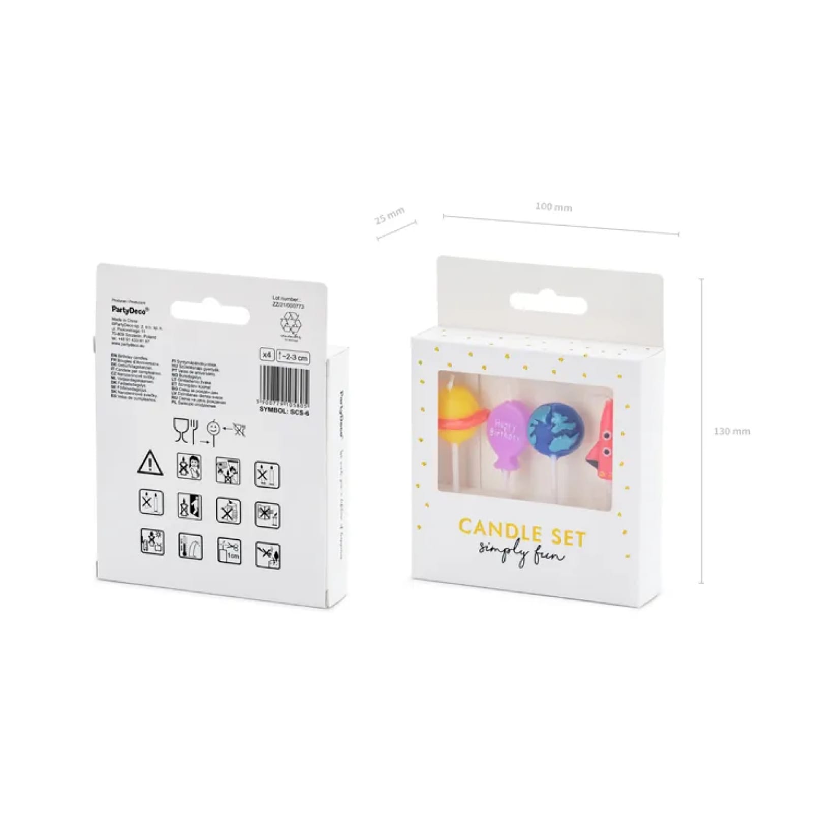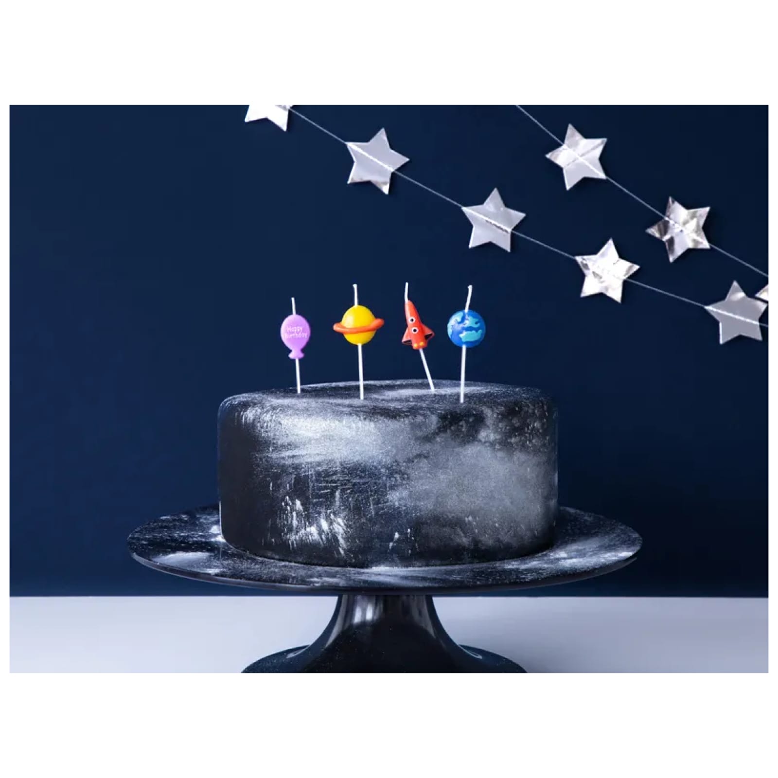 O Kit Velas Espaço com 4 unidades é perfeito para deixar a festa ainda mais divertida e cheia de aventura! Com temática espacial, essas velas trazem um toque criativo e moderno para a decoração do bolo.
