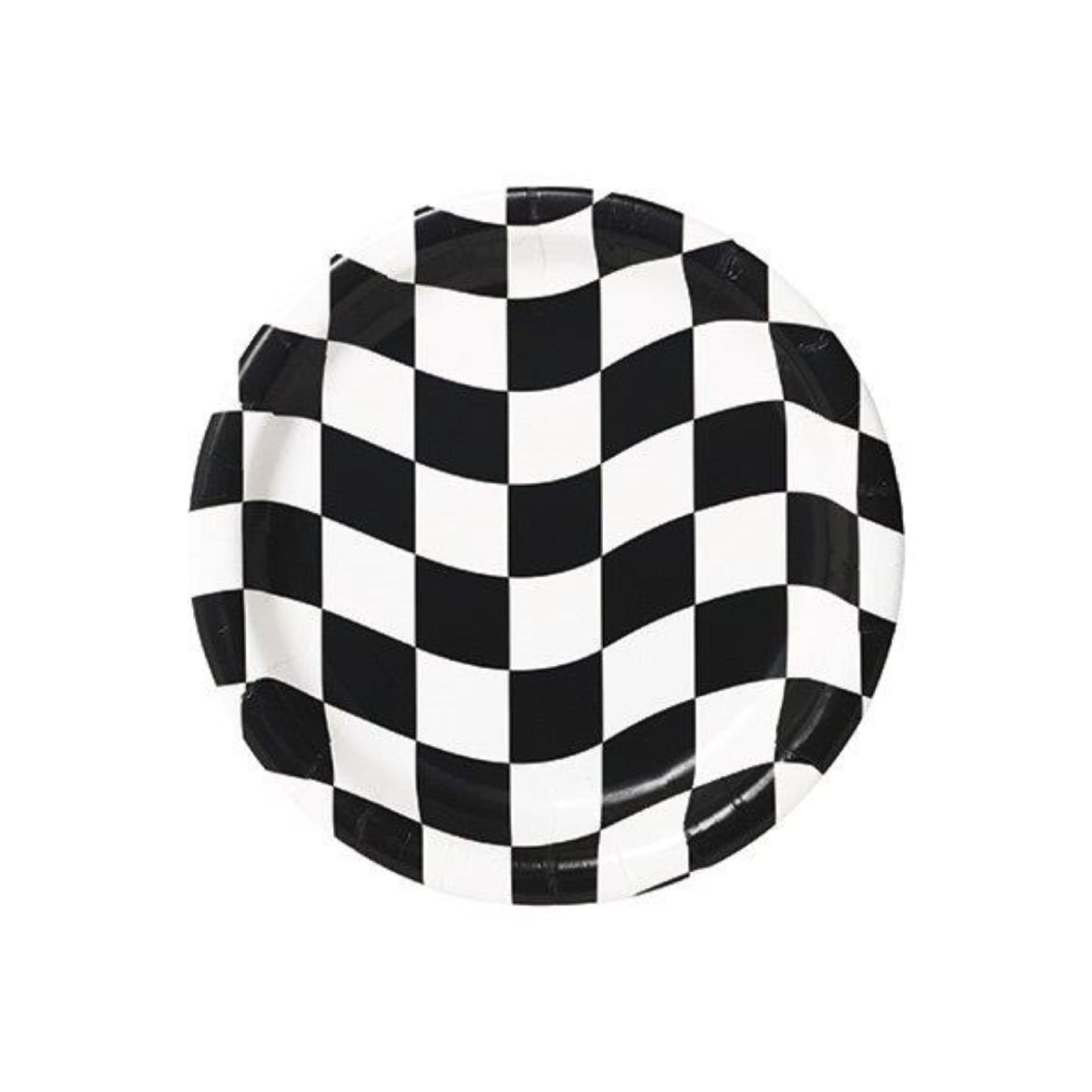 Dá um toque divertido à tua festa com estes pratos de papel Corrida com padrão de bandeira aos quadrados! Perfeitos para aniversários temáticos e festas cheias de velocidade. ✨