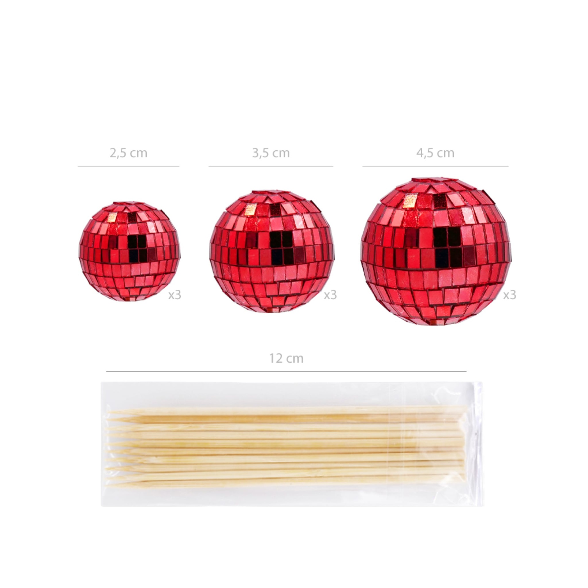 Home Todos os Artigos 9 Esferas Decorativas Espelhadas Vermelho 9 Esferas Decorativas Espelhadas Vermelho SKU: topout039 7,90 € Desconto de %. IVA incluído. O produto encontra-se sem stock. Adicionar à wishlist Conjunto de 9 peças de diferentes tamanhos. As nossas esferas são ideais para decoração dos seus bolos e eventos. Ideais para quem deseja adicionar um toque elegante e moderno as suas criações. Material: Esferovite e madeira (palito). Atenção: Produto não comestível. Uso apenas decorativo. Deve ser removido antes do consumo. Marca Just add Love Tags topo de bolo Características Partilhar