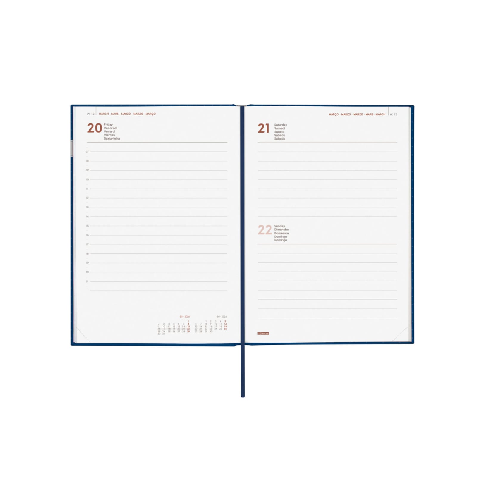Amplo espaço para escrita para todos os dias. Com horas.
