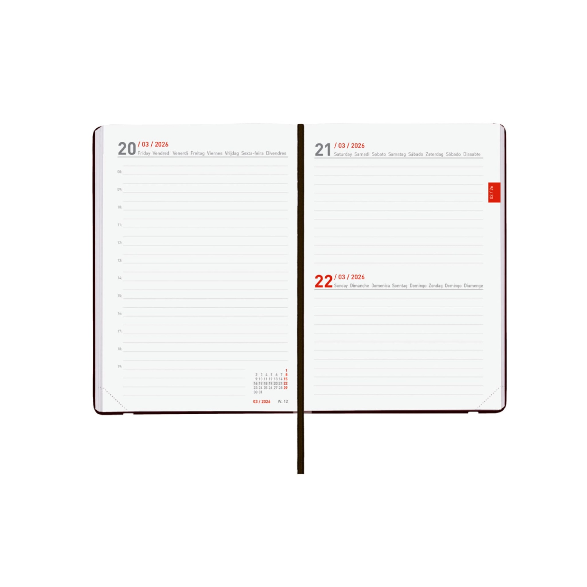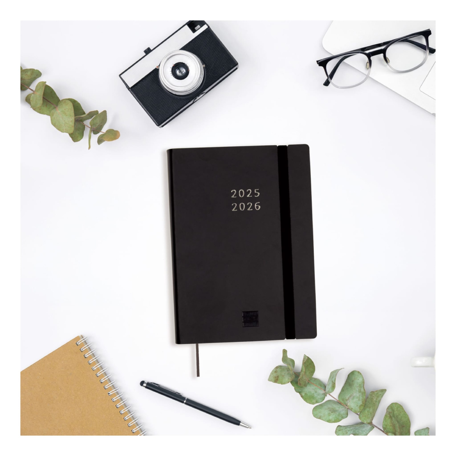 Agenda de capa flexível de 18 meses: começa em julho de 2025 e termina em dezembro de 2026. Perfeito para planejamento de longo prazo. Capas flexíveis muito agradáveis ao toque e abertura perfeita para uma digitação confortável. Com fita de malha e elástico. Os cantos são microperfurados para localizar rapidamente a semana atual. Para facilitar a localização a cada mês, a anuidade oferece um indicador no lado direito das páginas. Agenda com informações de interesse na anuidade e outros conteúdos extras.