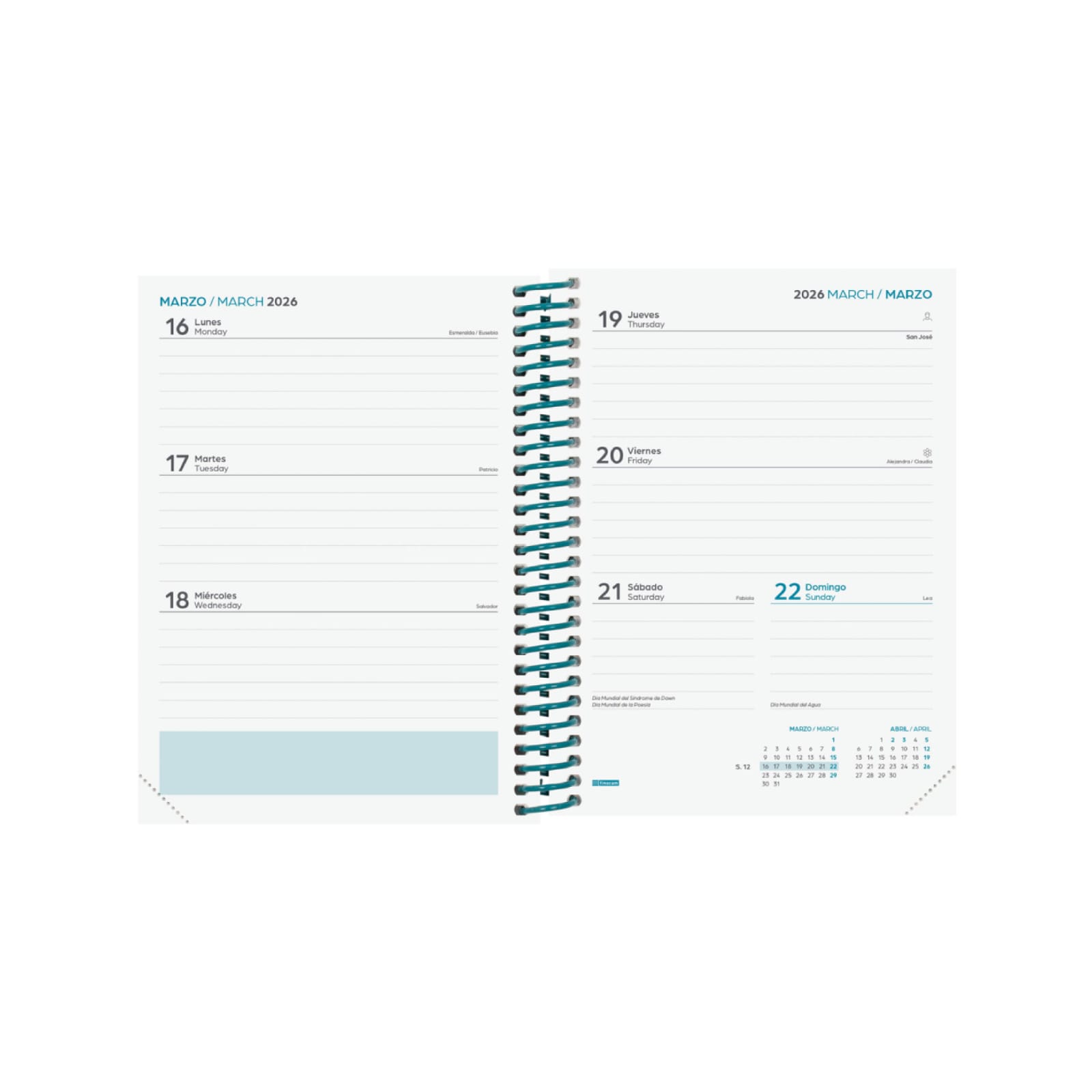 Agenda para alunos que visam a organização do ano letivo. Espiral de plástico e capa de cartão forrado. Os cantos são microperfurados para localizar rapidamente o dia/semana atual. Agenda com informações de interesse na anuidade e outros conteúdos extras úteis e práticos.
