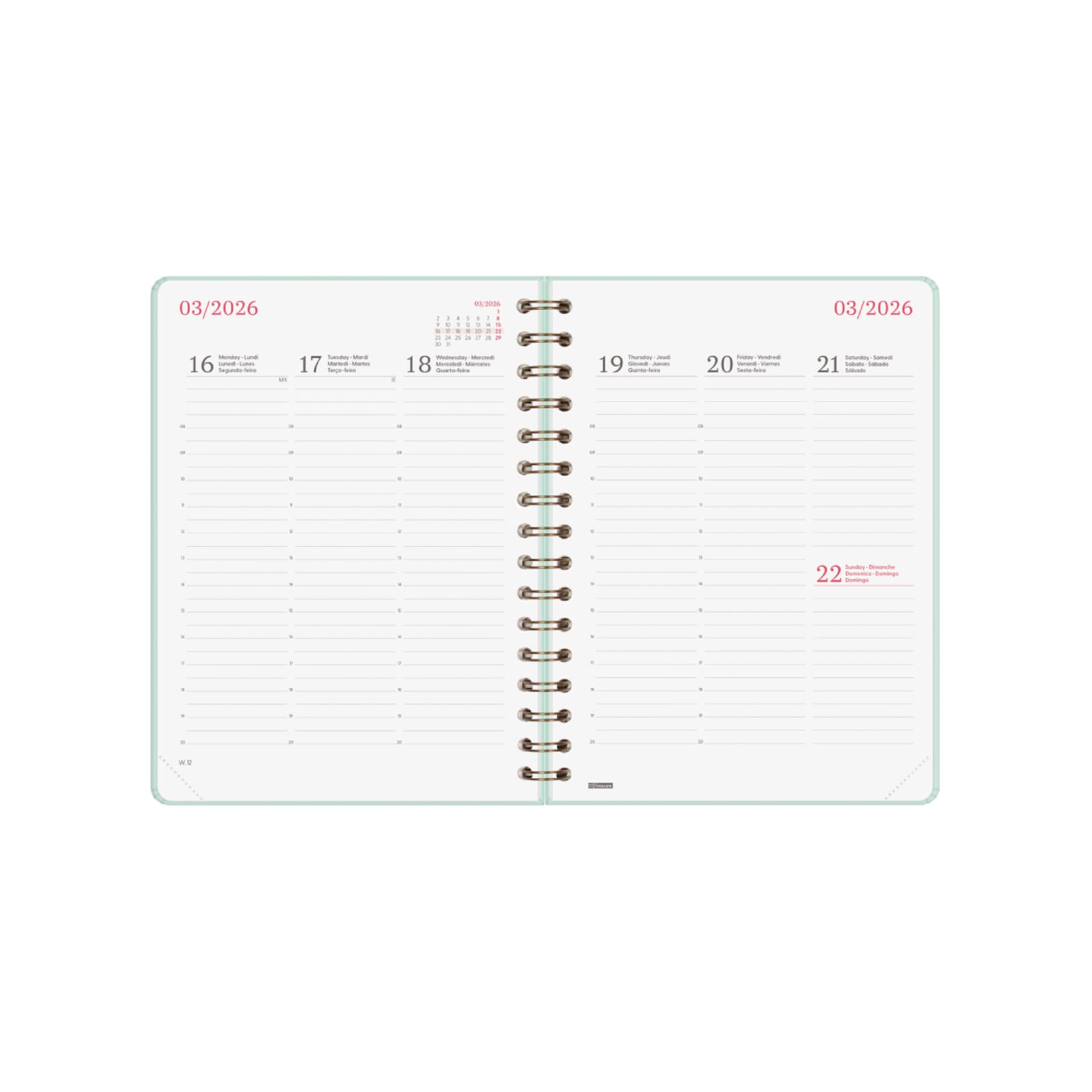 Agenda semanal A5 2026 Espiral Alma Mint | Finocam