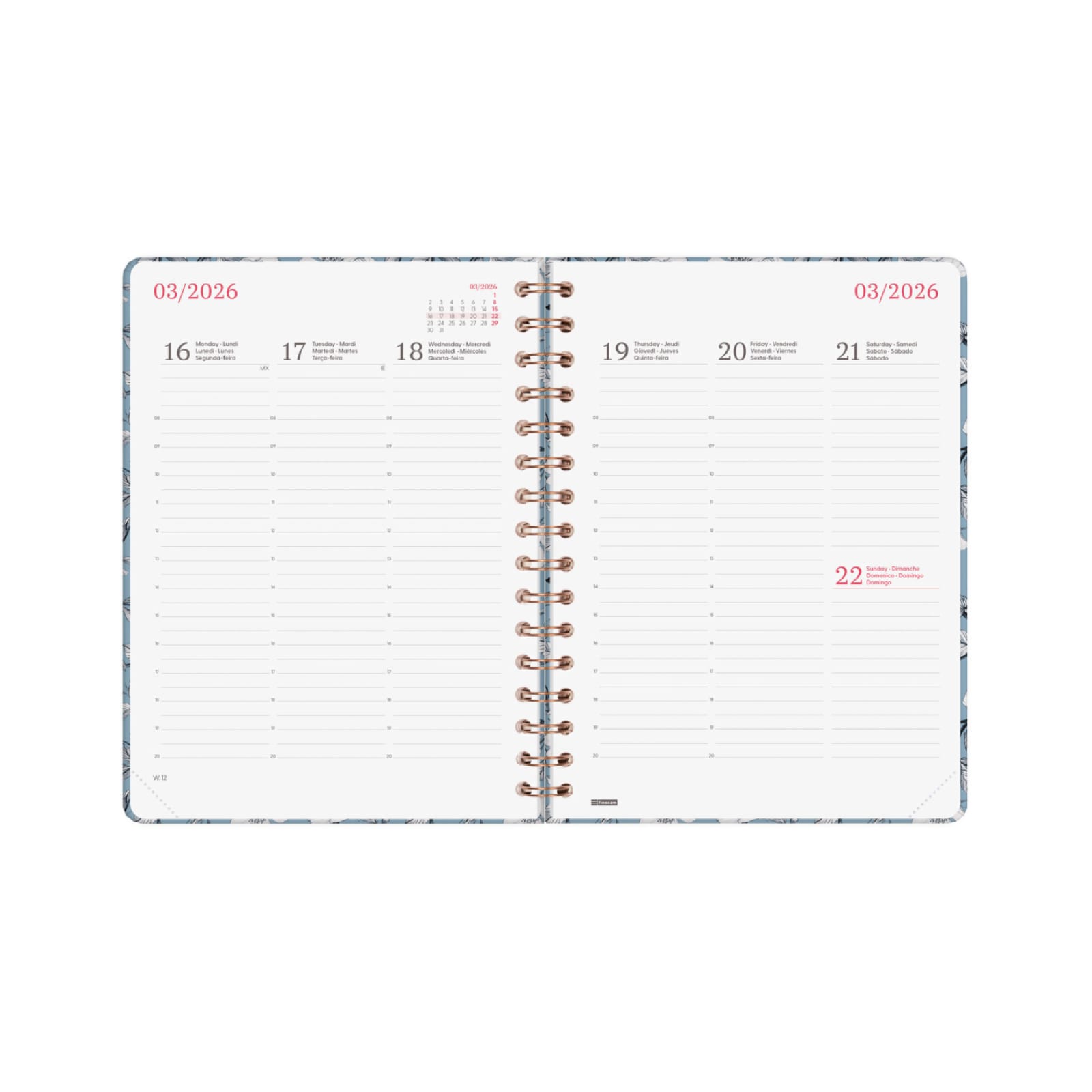 Agenda semanal A5 2026 Espiral You Flor de Algodão | Finocam