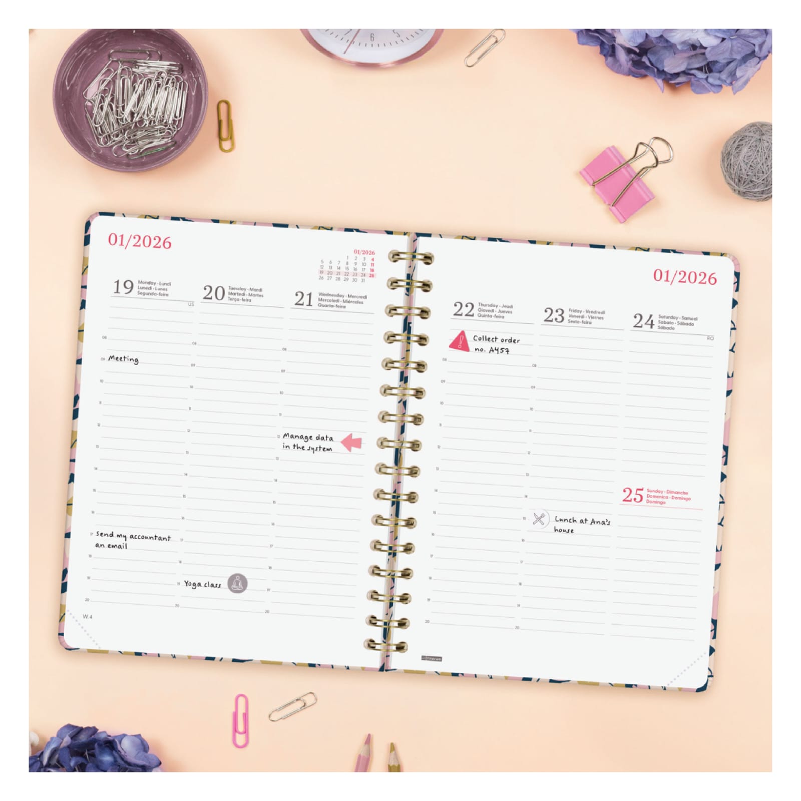 Agenda semanal A5 2026 Espiral You Leaves | Finocam