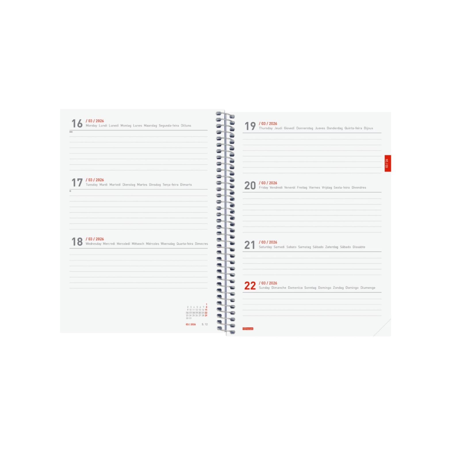 Agenda Semanal Espiral 18 Meses 2025/2026 | Finocam