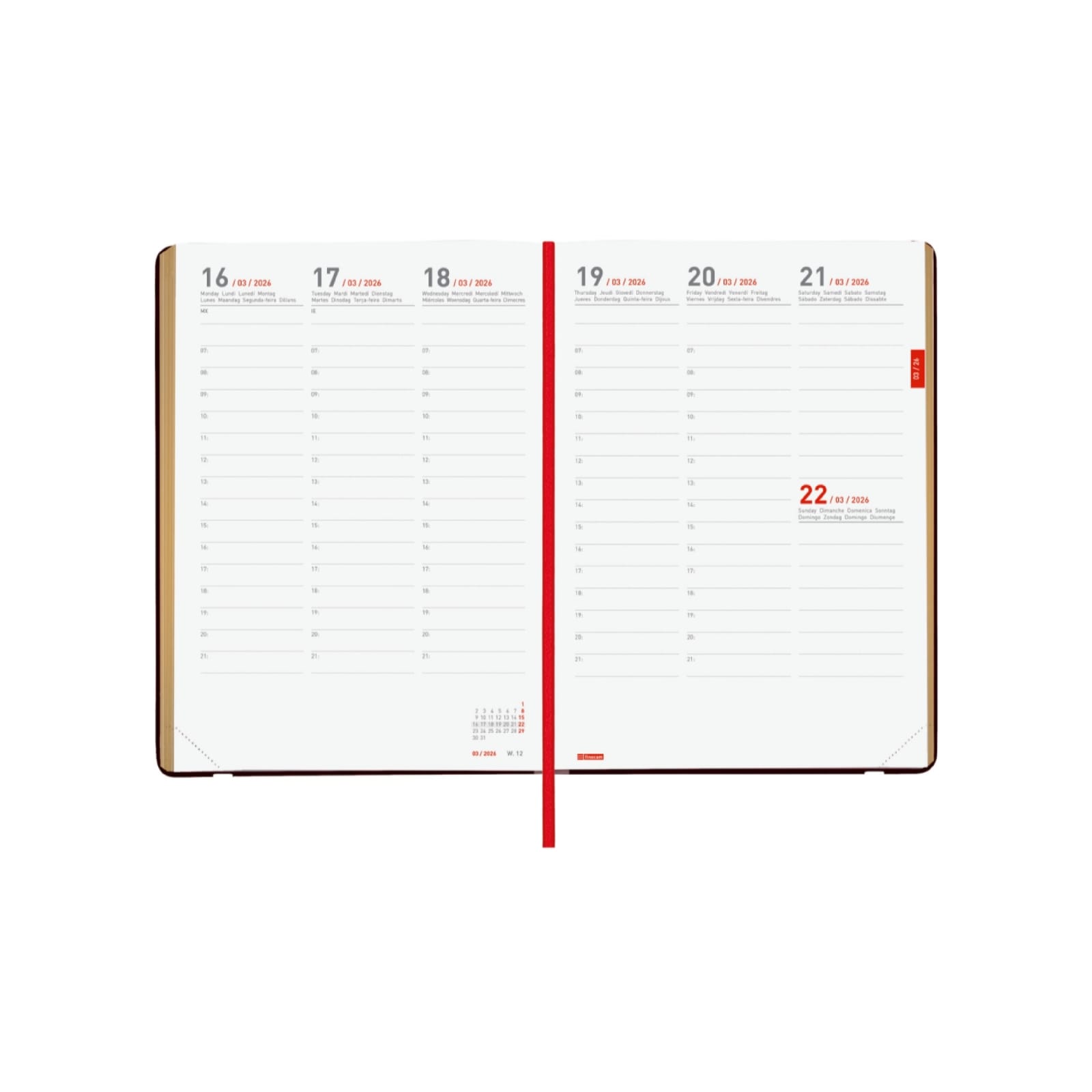 Agenda de capa flexível de 18 meses: começa em julho de 2025 e termina em dezembro de 2026. Perfeito para planejamento de longo prazo. Capas flexíveis muito agradáveis ao toque e abertura perfeita para uma digitação confortável. Com fita de malha e elástico. Os cantos são microperfurados para localizar rapidamente a semana atual. Para facilitar a localização a cada mês, a anuidade oferece um indicador no lado direito das páginas. Agenda com informações de interesse na anuidade e outros conteúdos extras.