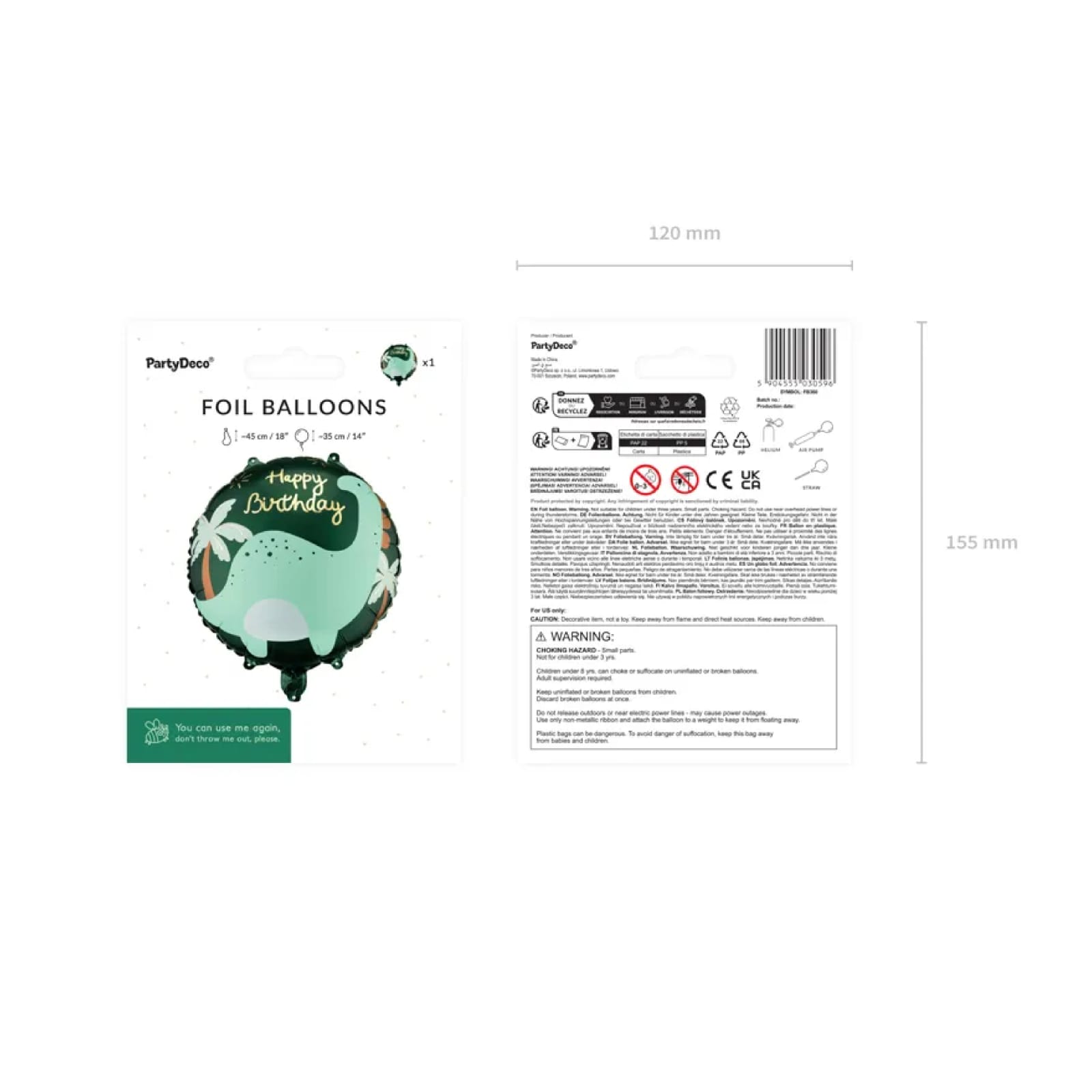 Celebre em grande estilo com este divertido balão foil brontossauro, com a inscrição “Happy Birthday”. Perfeito para festas infantis e temas de dinossauros.
