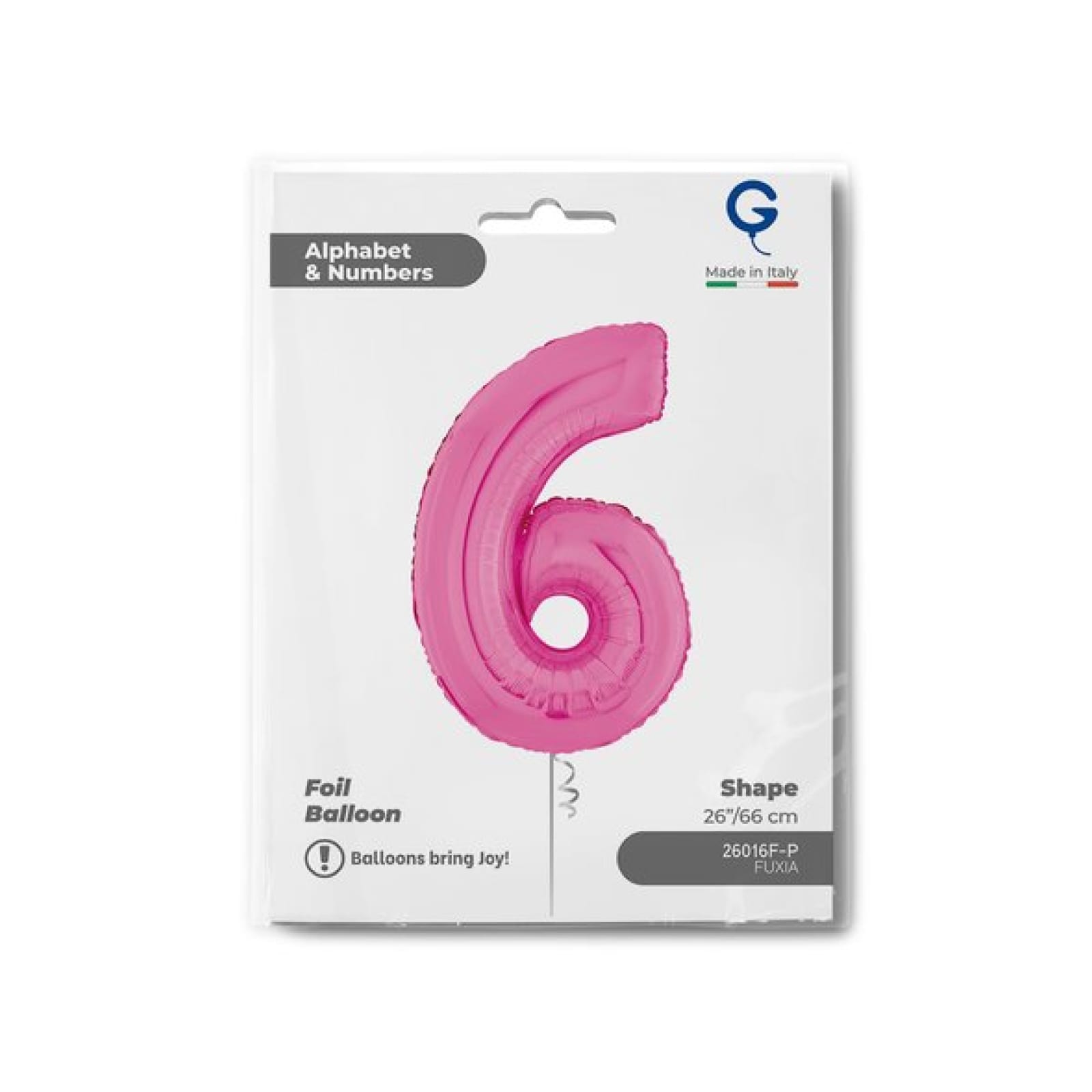 Destaque a sua decoração com o elegante balão foil número 6 em fuchsia/ rosa choque. Com 66 cm (26”), é perfeito para aniversários, datas comemorativas e eventos especiais.