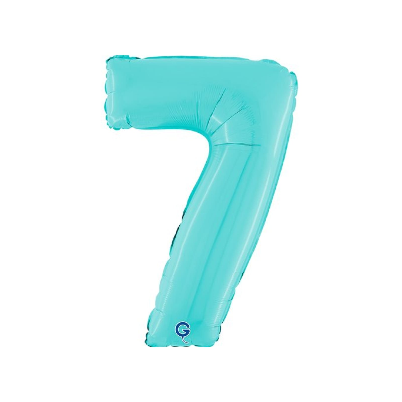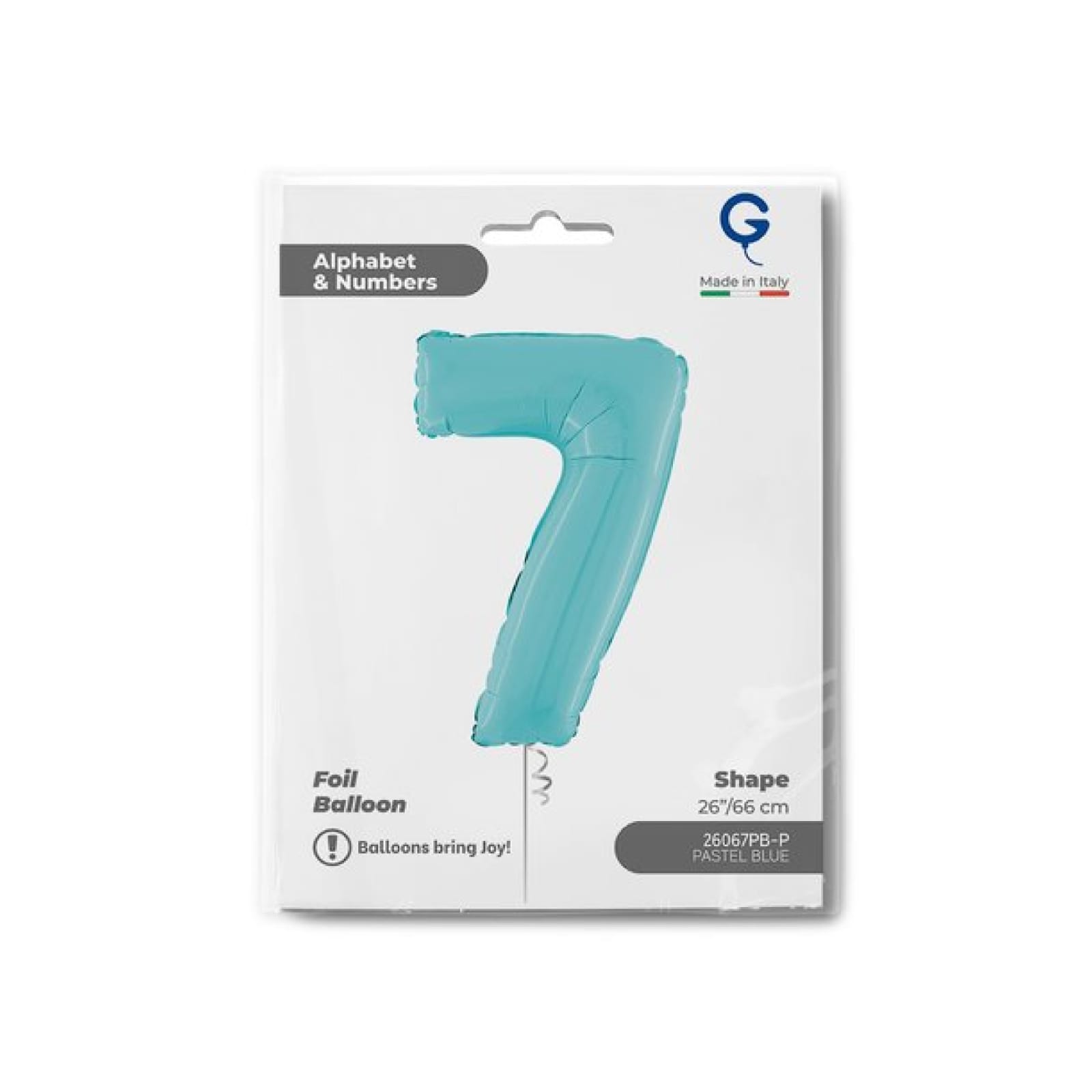 Destaque a sua decoração com o elegante balão foil número 7 em azul pastel. Com 66 cm (26”), é perfeito para aniversários, datas comemorativas e eventos especiais.