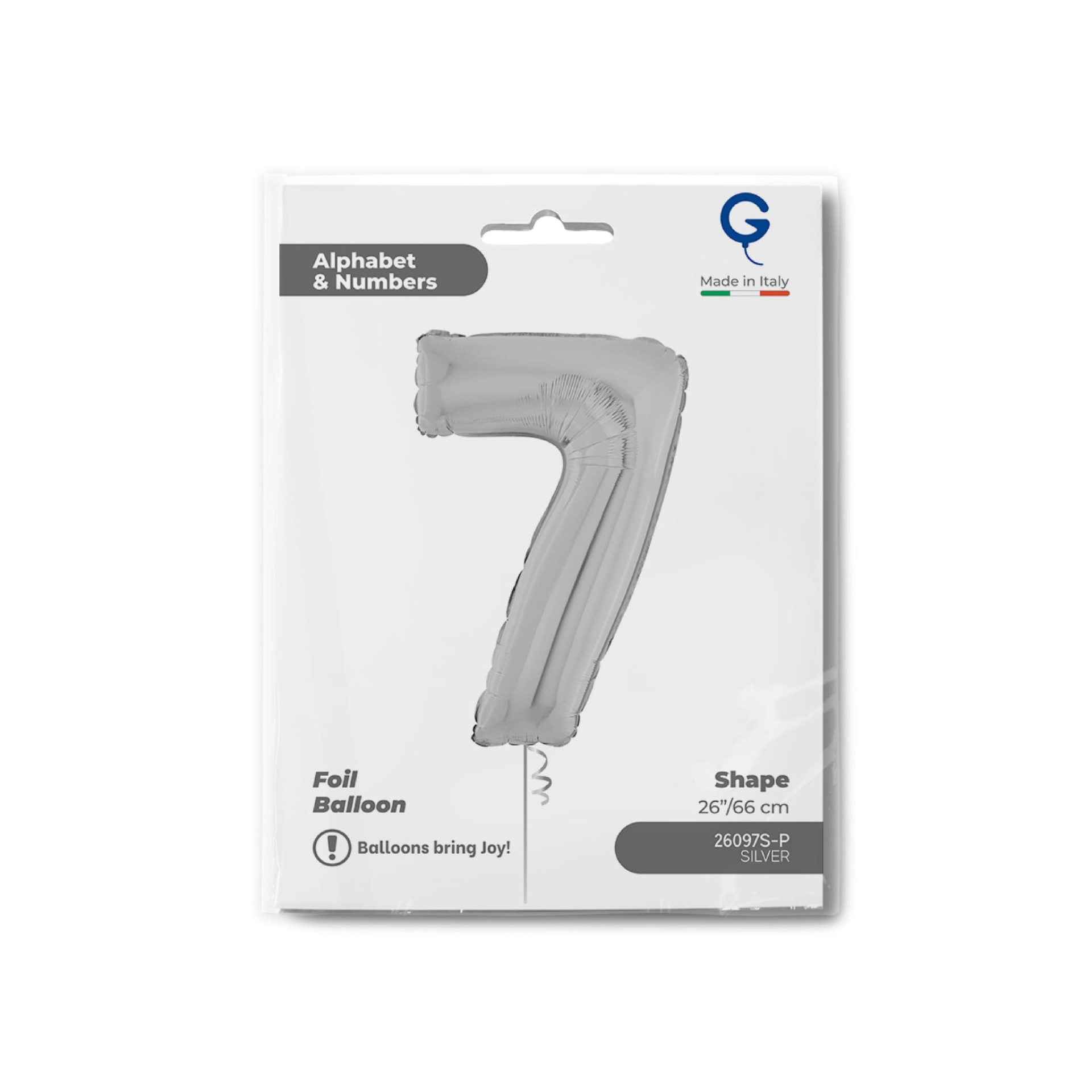 Destaque a sua decoração com o elegante balão foil número 7 em prateado. Com 66 cm (26”), é perfeito para aniversários, datas comemorativas e eventos especiais.