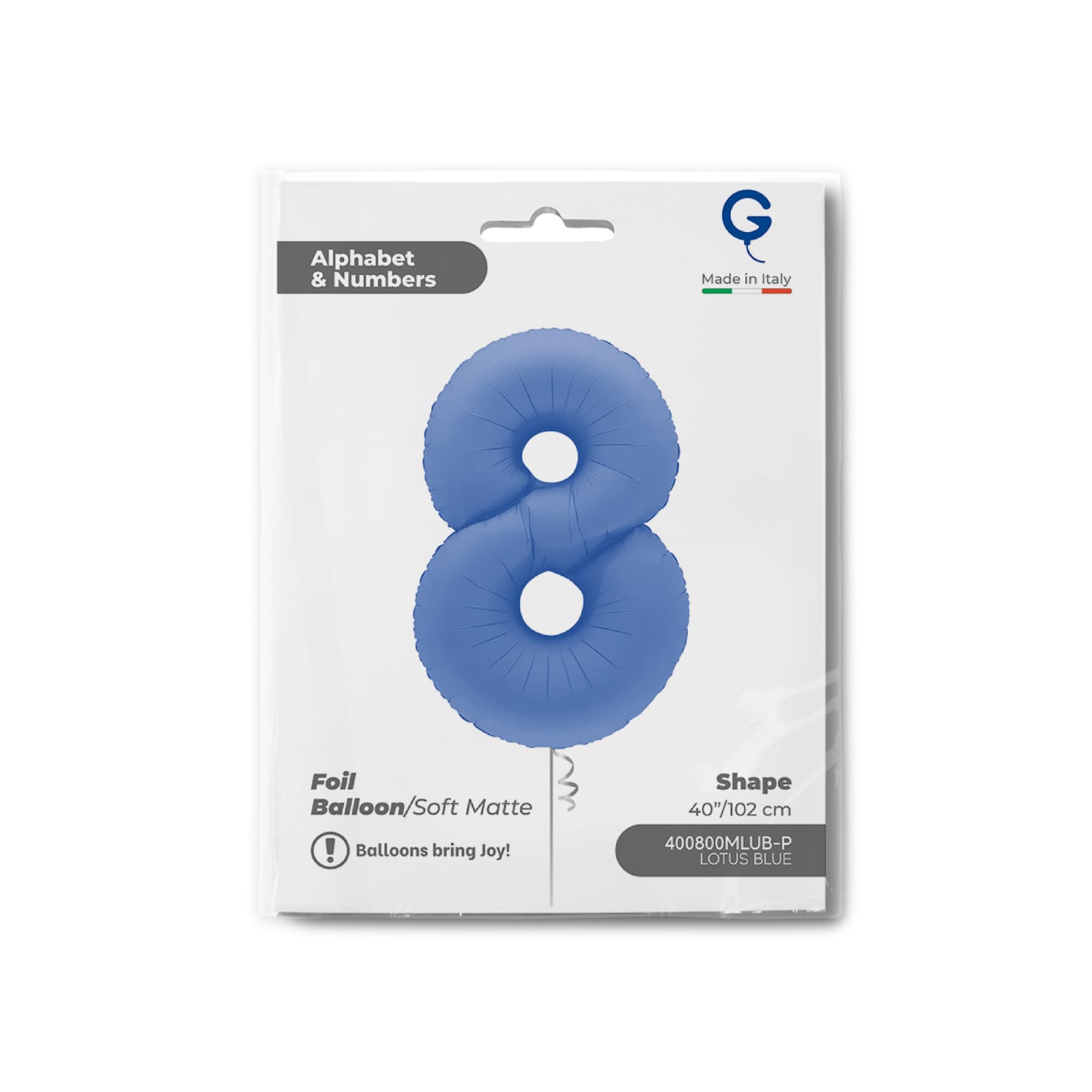 Destaque a sua decoração com o elegante balão foil número 8 em azul lotus mate. Com 102 cm (40”), é perfeito para aniversários, datas comemorativas e eventos especiais.