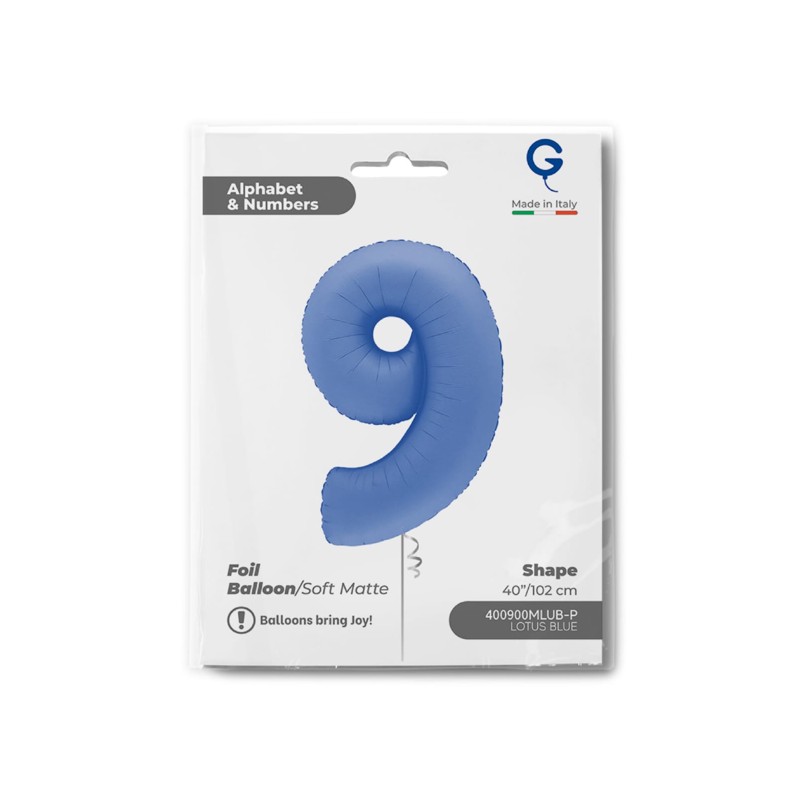 Balão Foil Nº 9 Azul Lotus Mate - 102cm