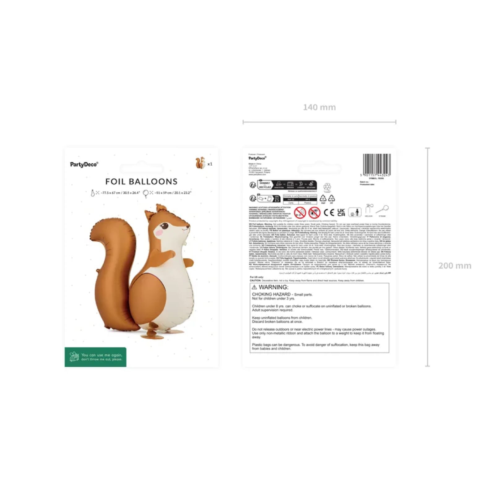 Atenção: o balão em foil conduz eletricidade. Não deve ser libertado em espaços exteriores nem utilizado próximo de linhas elétricas ou fontes de corrente elétrica.