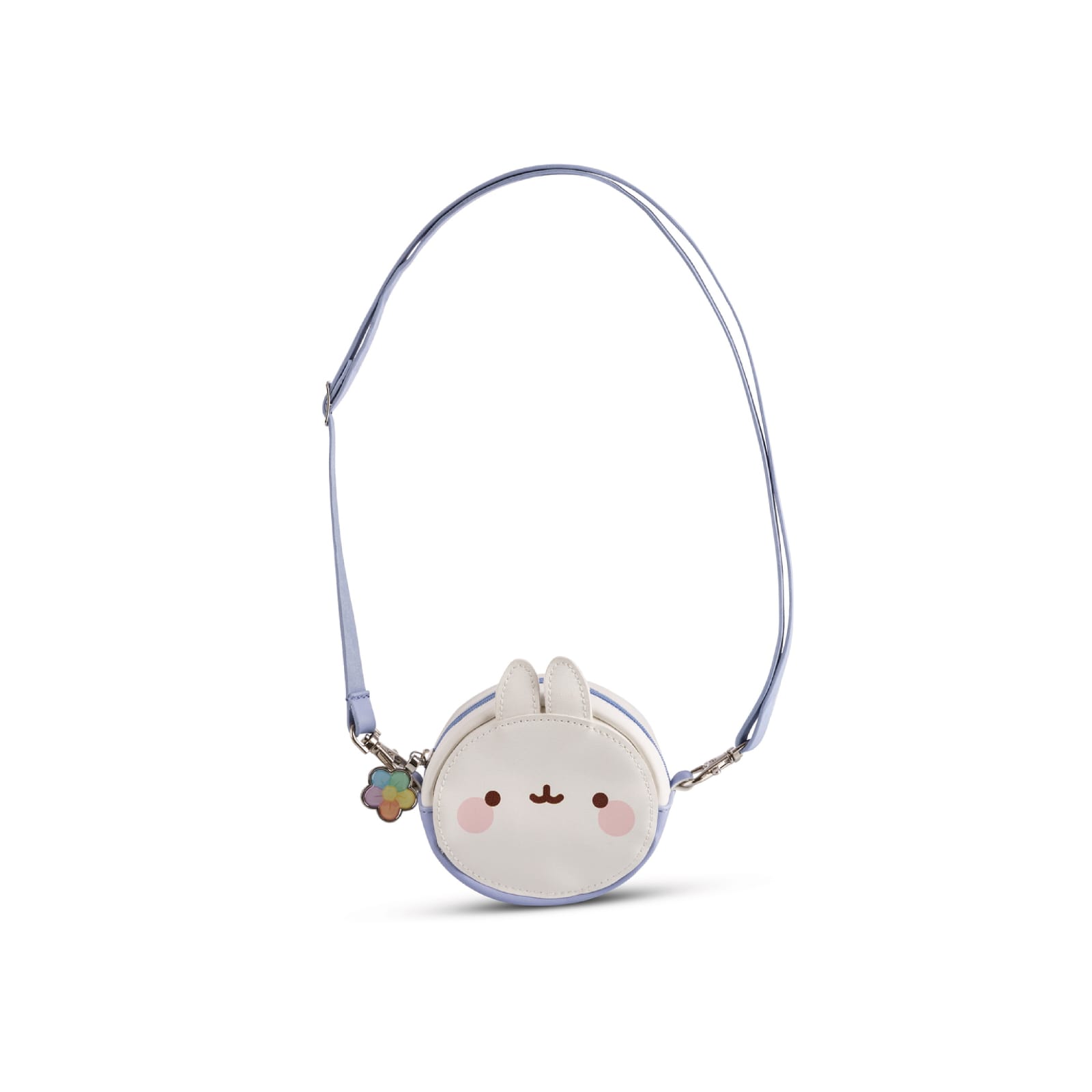 Com sua alça de transporte roxa ajustável em comprimento, a bolsa Molang é fácil de transportar e oferece espaço para chaves e dinheiro.