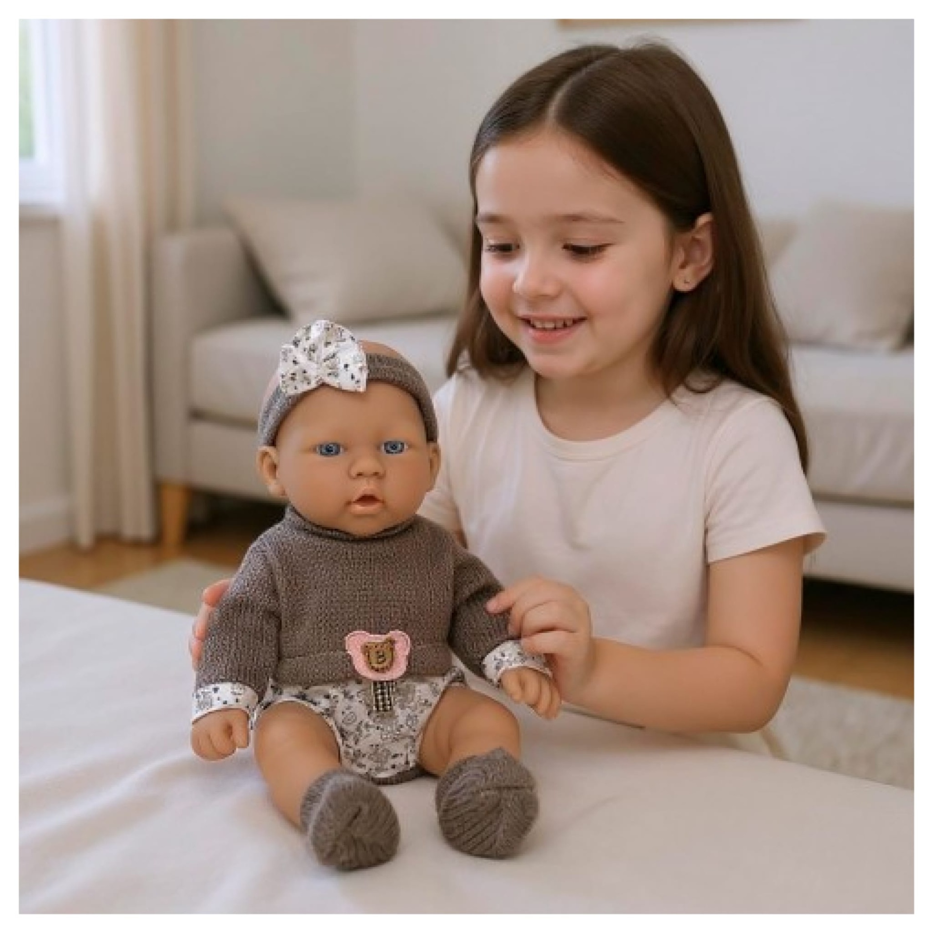 Descobre o boneco bebé realista de 26 cm, perfeito para brincadeiras cheias de carinho e imaginação. Com um design moderno e expressivo, é ideal para jogos de faz de conta, ajudando as crianças a explorar emoções, desenvolver empatia e aprender a cuidar.