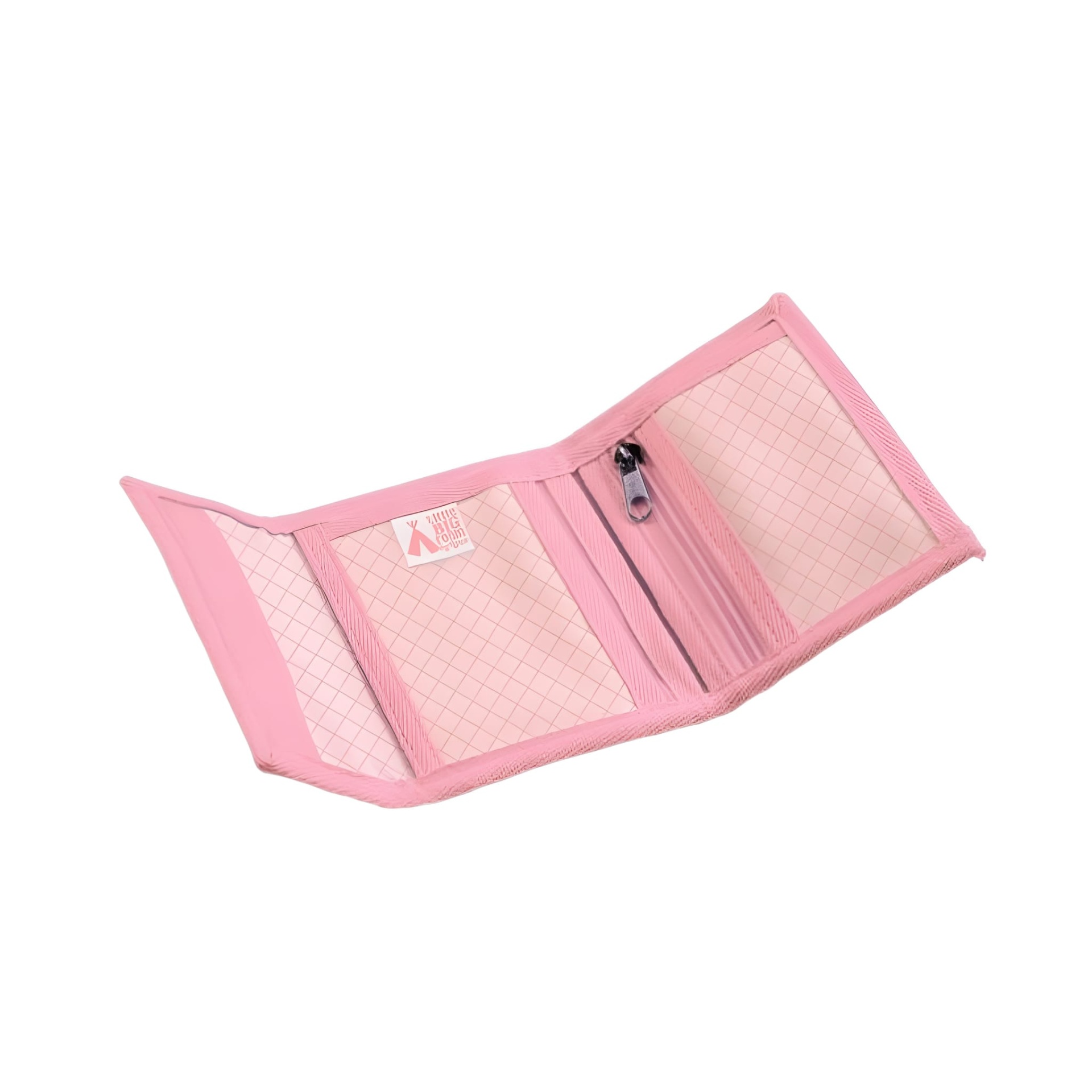 Uma carteira com fecho de velcro ilustrada com uma estrela cadente, perfeita para guardar as suas poupanças. Fabricada em lona revestida, é impermeável e mantém os seus objectos secos. No interior, tem uma bolsa com fecho para as moedas, um compartimento para as notas e três compartimentos para os cartões.