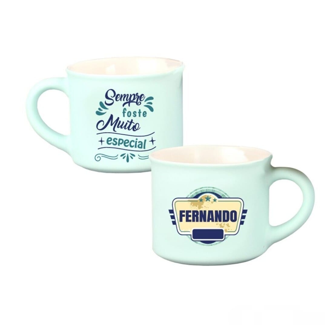 Home Chávenas de Café Coloridas Personalizadas Chávena café aveludada "Fernando" Chávena café aveludada "Fernando" SKU: cafe0022 5,95 € Desconto de %. IVA incluído. Comprar Contactar Adicionar à wishlist Chávena de Café Aveludada Chávena elegante com acabamento macio e sofisticado e toque aveludado. Acompanha caixa de cartão, ideal para oferecer. Material: Cerâmica Lavável na máquina de lavar loiça. Marca Dupla Tags Chávena com nomeNomes Partilhar
