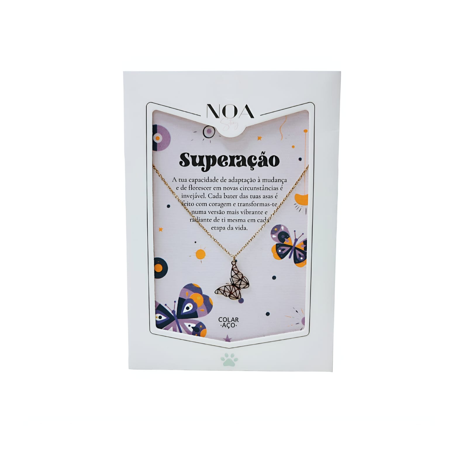 Colar dourado aço com borboleta "Superação" | Noa Story