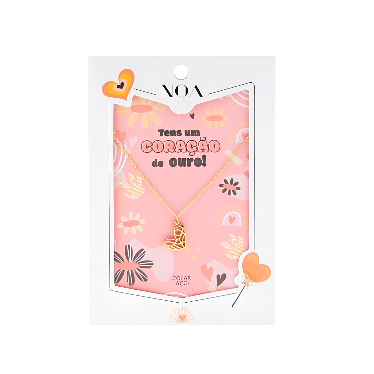 Colar Dourado em Aço "Tens um Coração de Ouro!" – Noa Story 💛✨