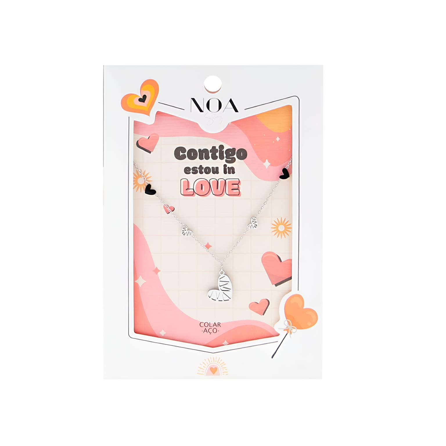 Colar Prateado em Aço "Contigo Estou In Love" – Noa Story 💖✨
