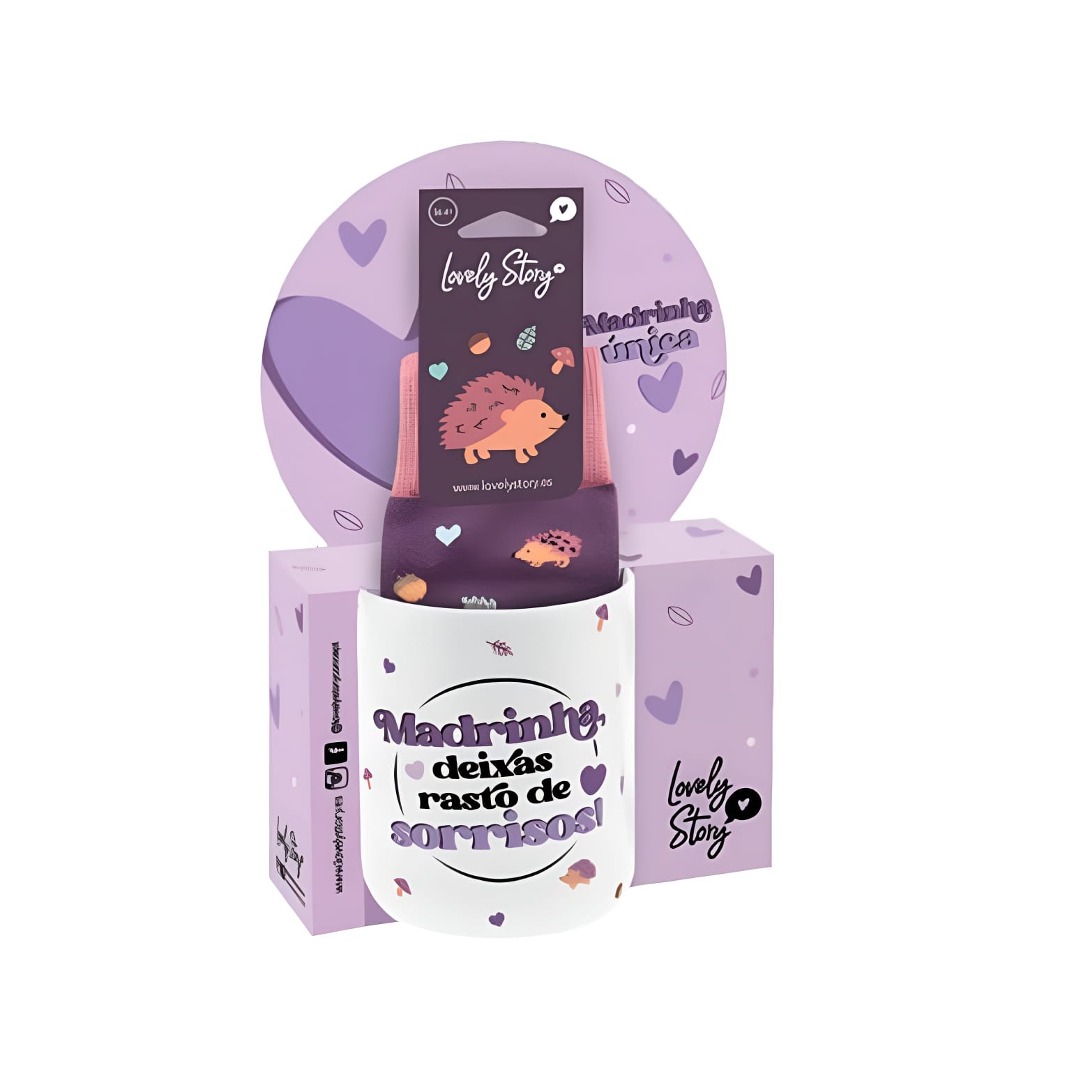 Conjunto Caneca + Meias “Madrinha, Deixas Rasto de Sorrisos!” | Lovely Story