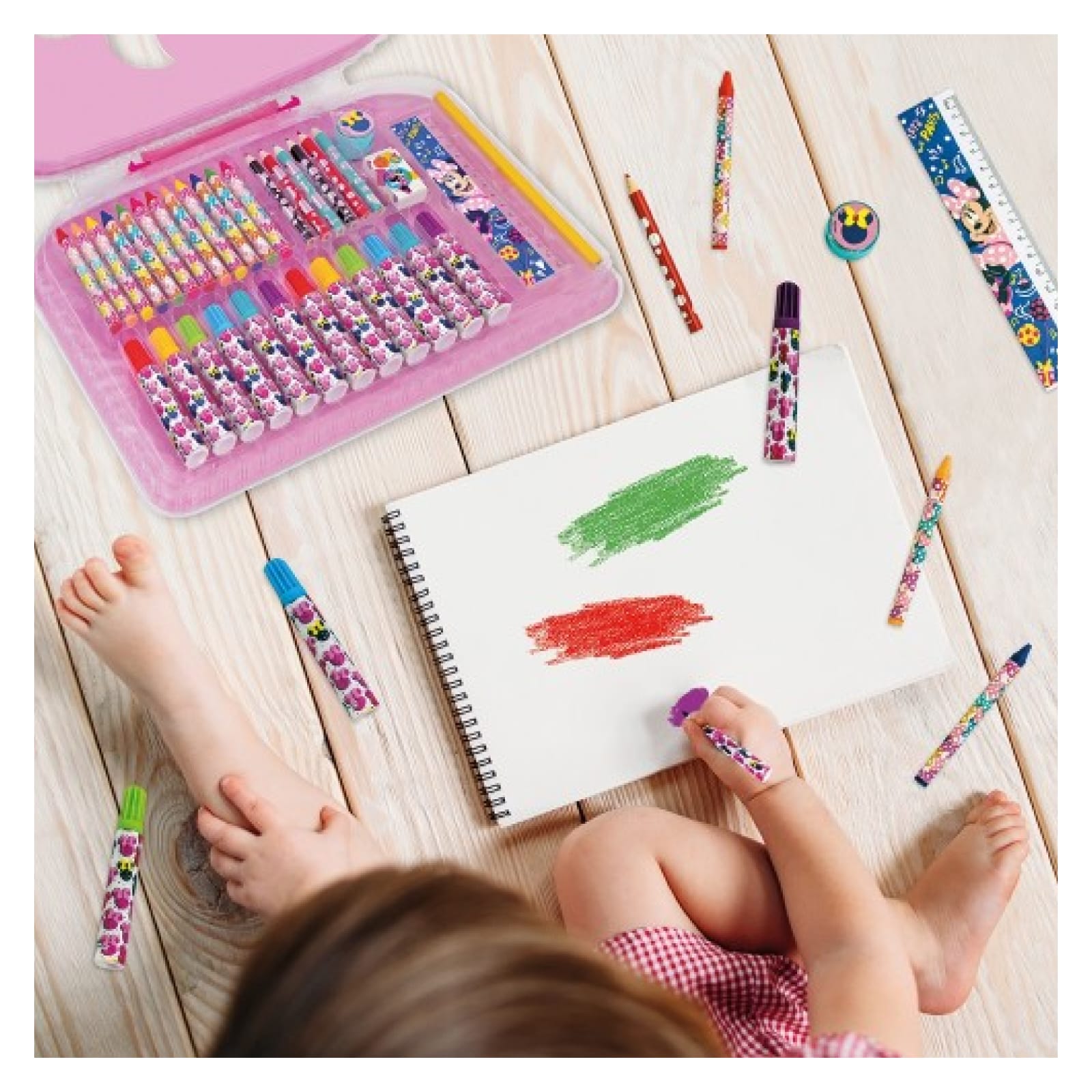 Ideal para crianças, este kit completo de desenho e pintura chega numa prática mala decorada com o icónico personagem MInnie
