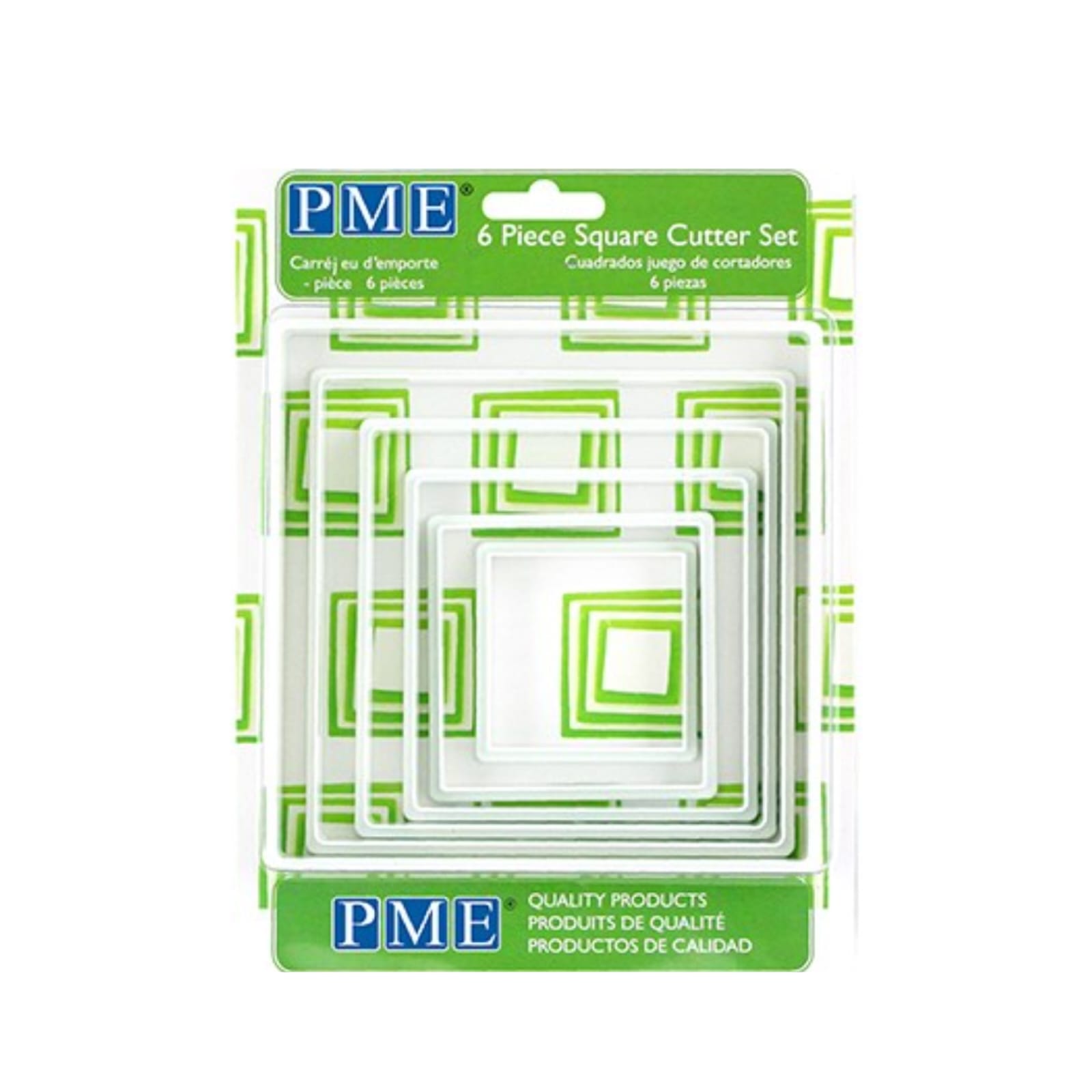 O conjunto de cortadores quadrados PME é ideal para cortar massas e criar decorações com precisão.