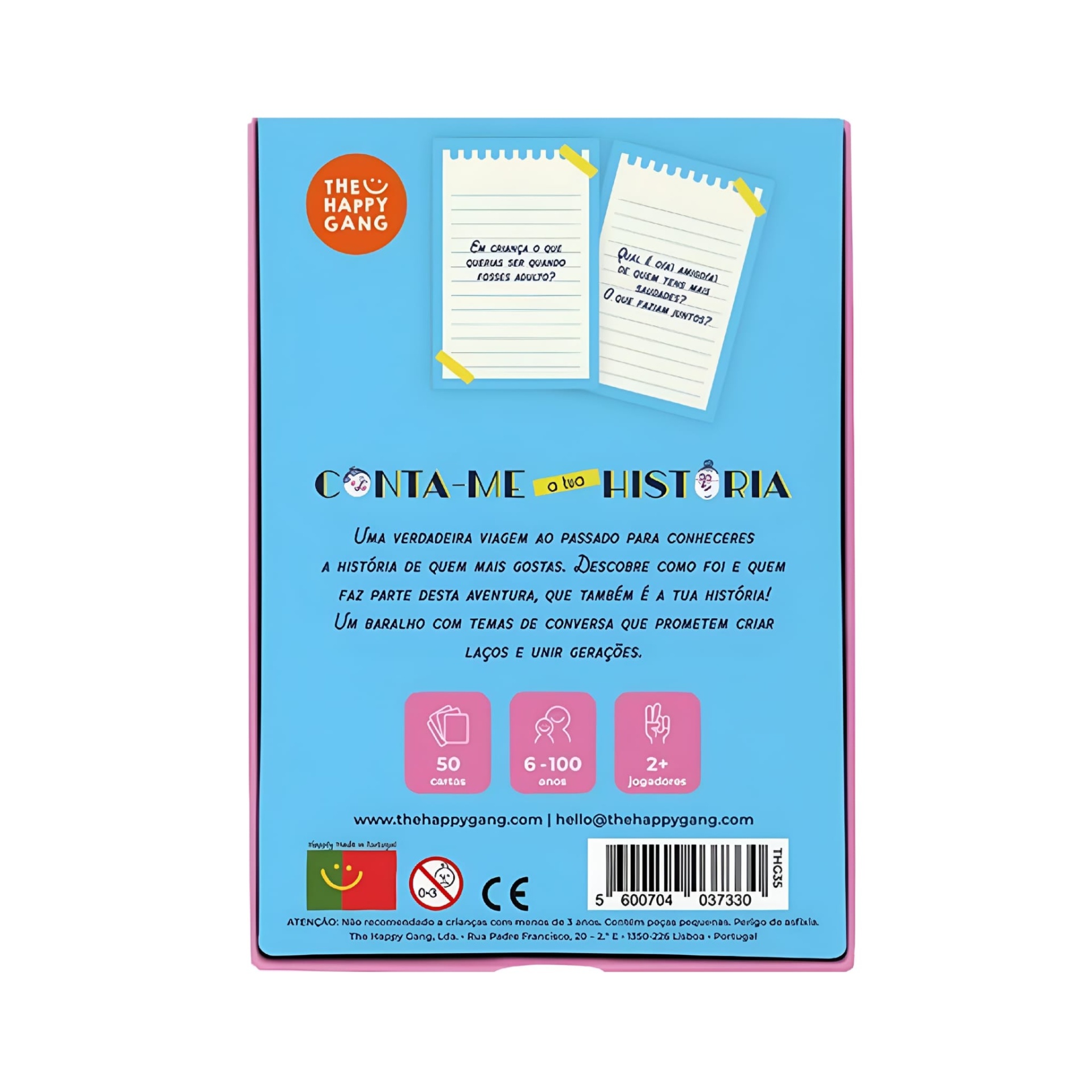 Home Jogos educativos Conta-me a Tua História | The Happy Gang Conta-me a Tua História | The Happy Gang SKU: thg35 11,90 € Desconto de %. IVA incluído. Comprar Contactar Adicionar à wishlist 50 perguntas para descobrires tudo sobre os teus avós! Uma verdadeira viagem ao passado para conheceres a história de quem mais gostas. Descobre como foi e quem faz parte desta aventura, que também é a tua história! Um baralho com temas de conversa que promete criar laços e unir gerações! Dos 6 aos 100 anos N.º de jogadores: + de 2 jogadores Marca The Happy Gang Partilhar