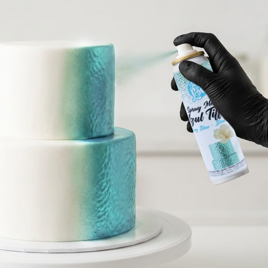Corante spray metálico alimentar com aroma a baunilha.