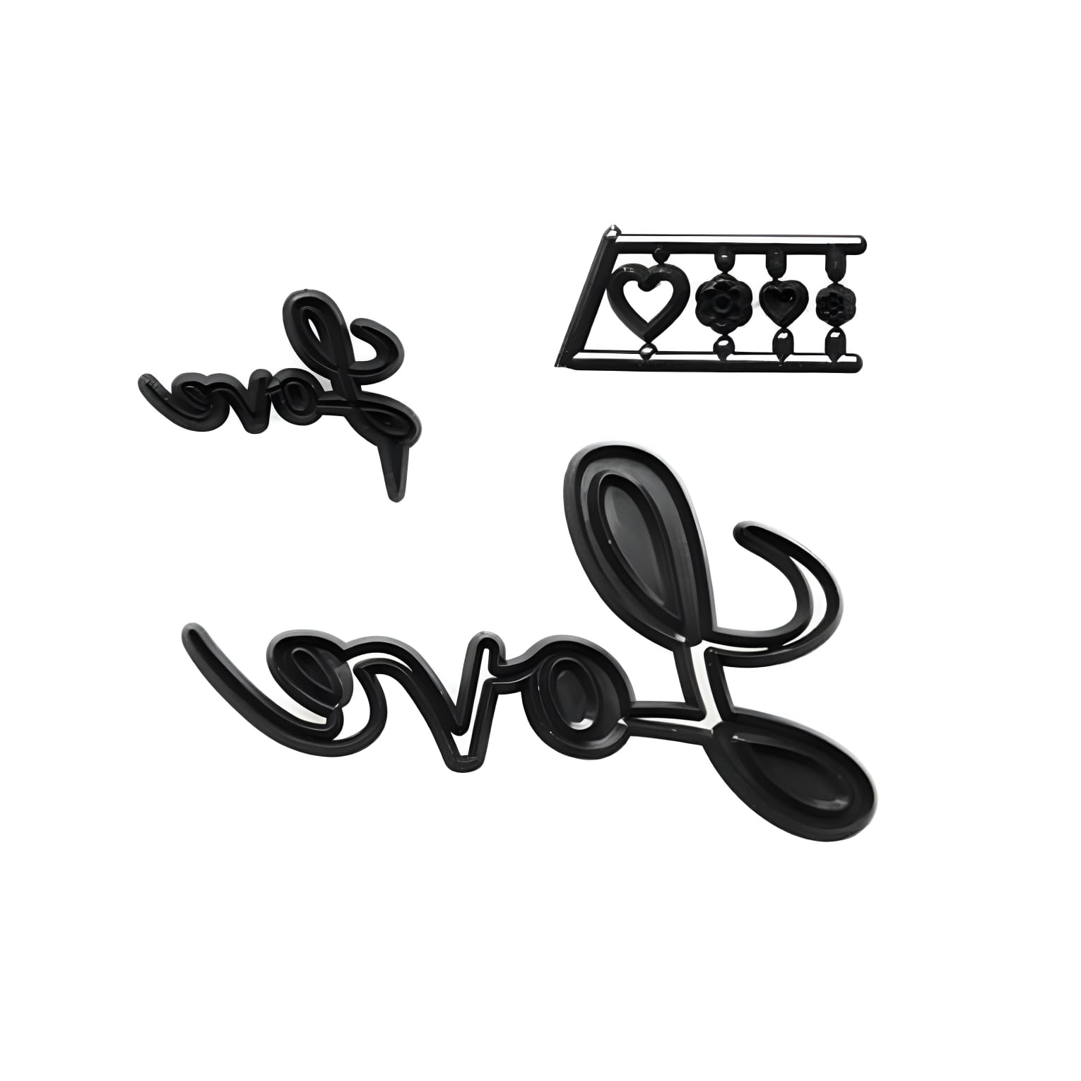 Crie decorações românticas e elegantes com este conjunto de cortadores “Love”, ideal para bolos de casamento, aniversários ou cupcakes especiais.