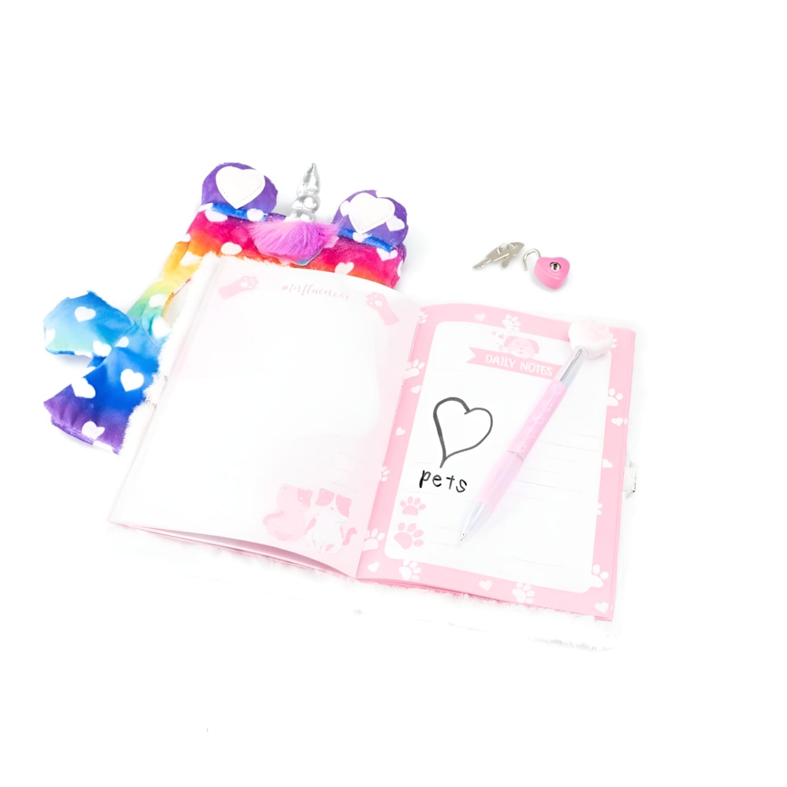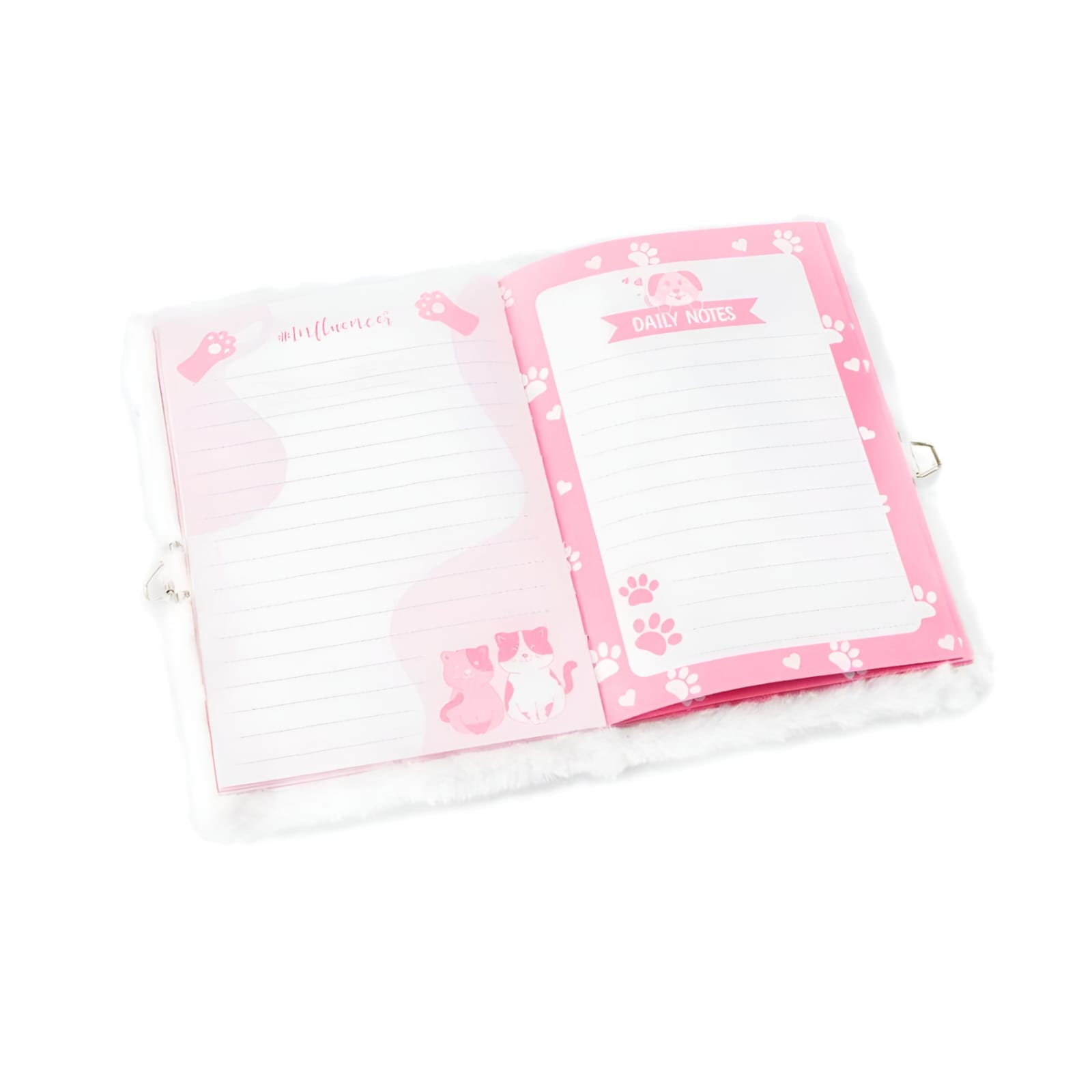 Um diário com uma capa peluda super macia, envolto em um fantástico vestido removível. Tantos assuntos diferentes para colecionar e mimar. Dentro da embalagem você encontrará uma caneta e um cadeado para guardar seus segredos.