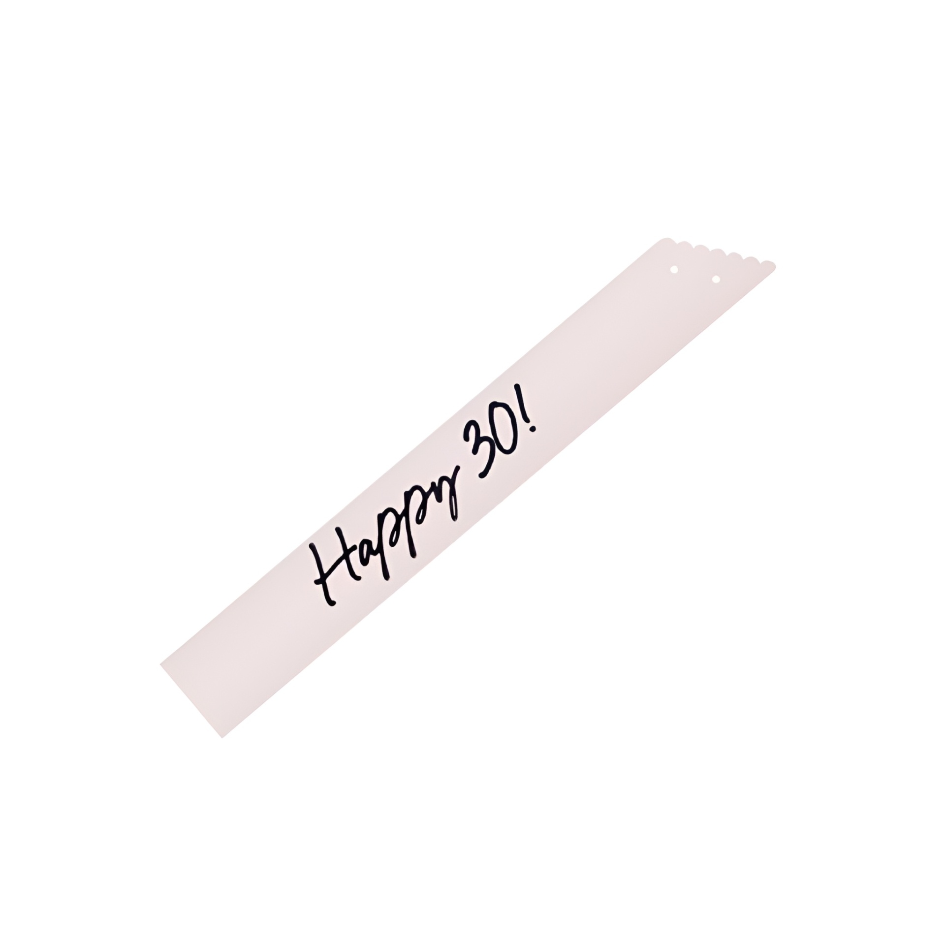 Descrição: Faixa de papel na cor creme com a inscrição "Happy 30" em preto.