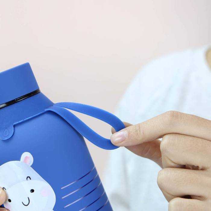 Home Cantis e garrafas Garrafa térmica Mazarine Hippo 350ml | Aurea Garrafa térmica Mazarine Hippo 350ml | Aurea SKU: BT30255 18,50 € Desconto de %. IVA incluído. Comprar Contactar Adicionar à wishlist Garrafa em aço Inoxidável 304 (adequado para uso alimentar) Frio: 24h Quente: 12h Toque emborrachado para uma melhor aderência. Hermético: tampa à prova de vazamentos. Adequado para todos os tipos de bebidas. Não retém nem emite qualquer sabor ou odor. Sem condensação. Antiderrame Completamente livre de BPA. Lavar à mão apenas. Não apto para microondas. Medidas: 7,5 cm de diâmetro x 15,5 cm de altura Capacidade: 350ml Marca Lovely Story Tags CantilAurea Kids Características Partilhar