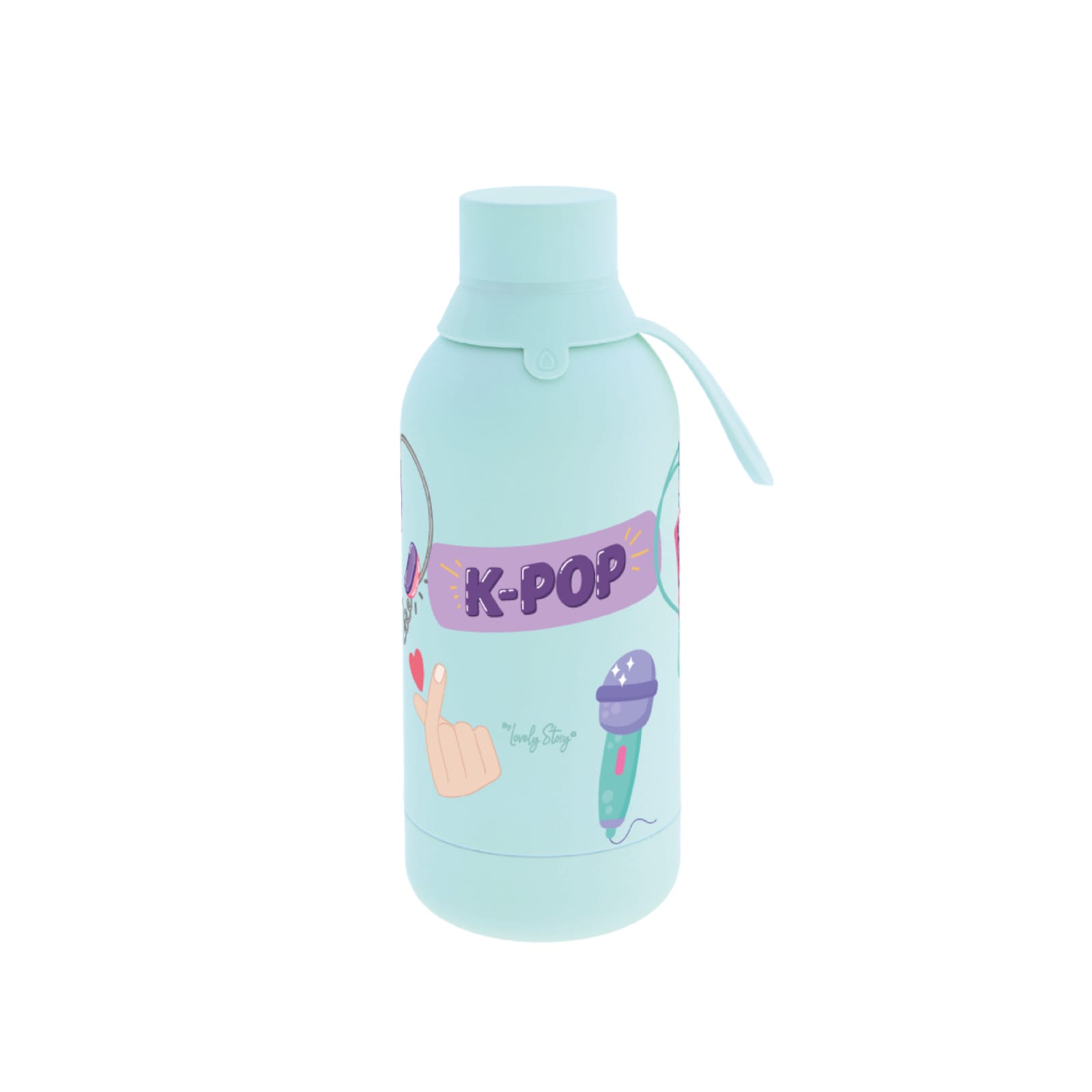 Ideal para a escola, trabalho, ginásio ou passeios, esta garrafa combina praticidade com uma estética inspirada no universo K-Pop, destacando-se pelo seu tom verde menta cheio de personalidade.