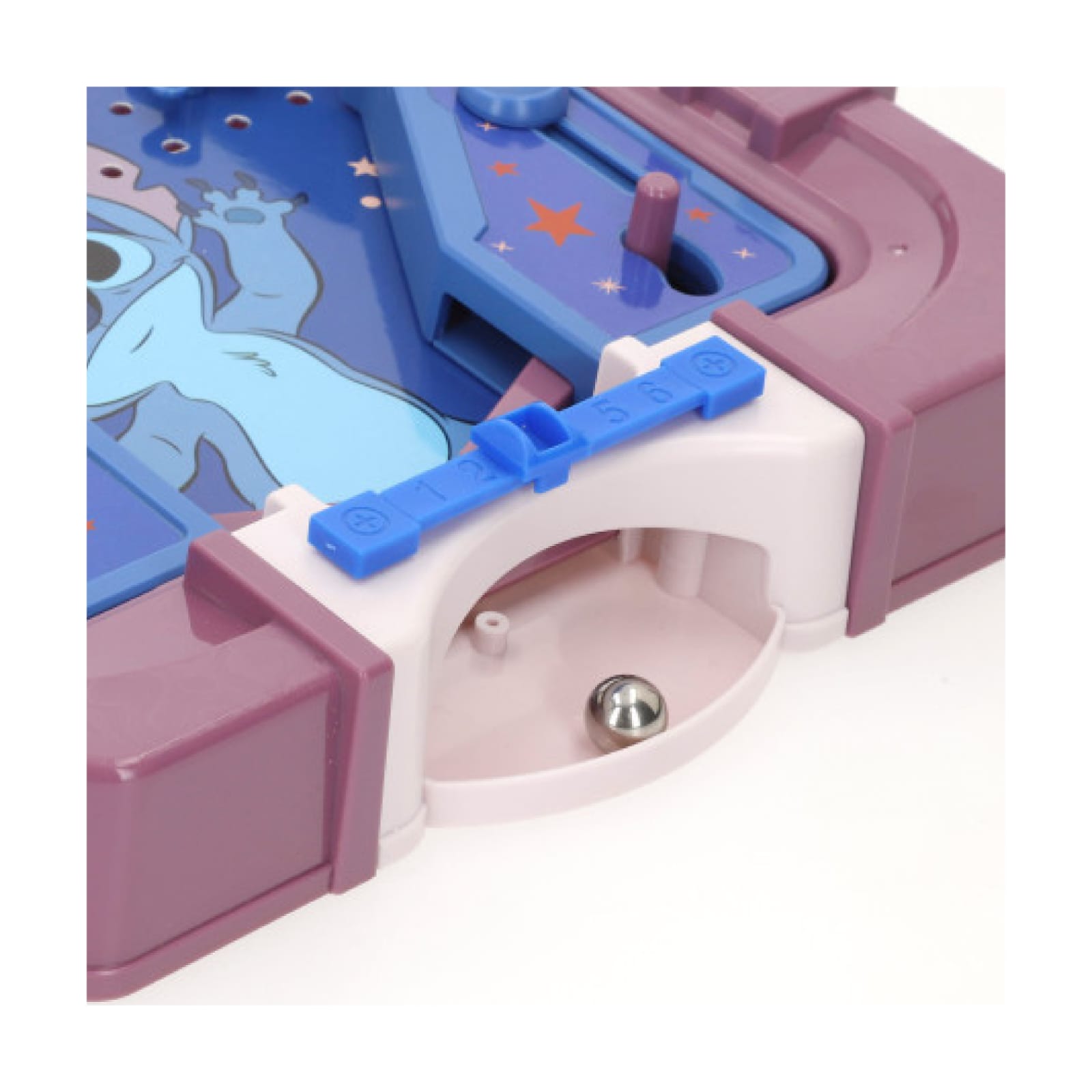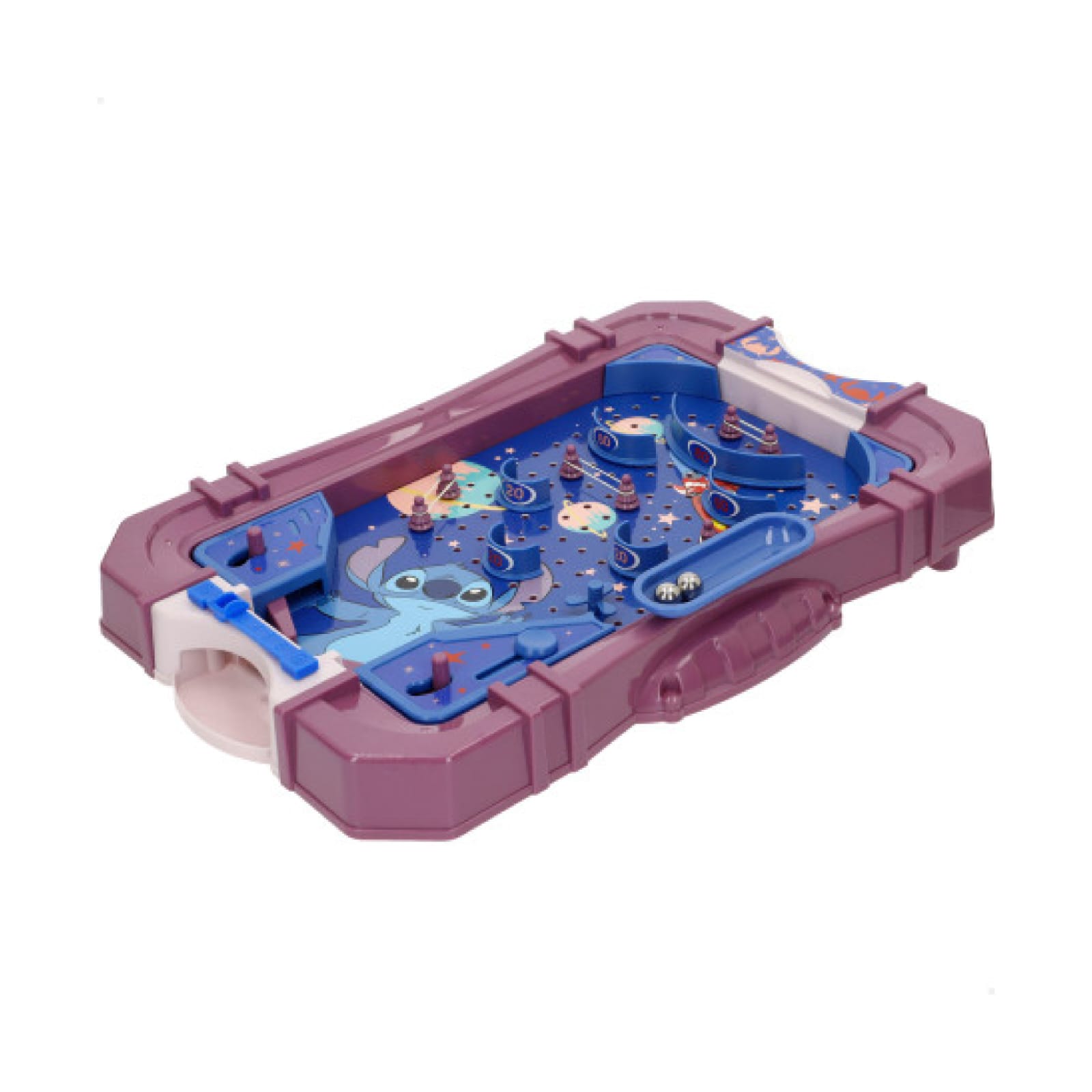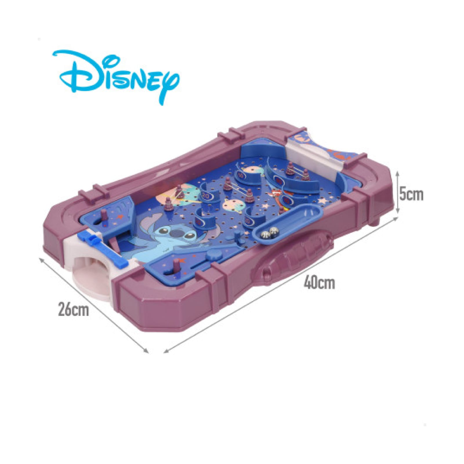 Pinball de mesa do personagem Stitch, ideal para diversão e entretenimento das crianças. Compacto e fácil de usar, é perfeito para brincar em qualquer lugar.