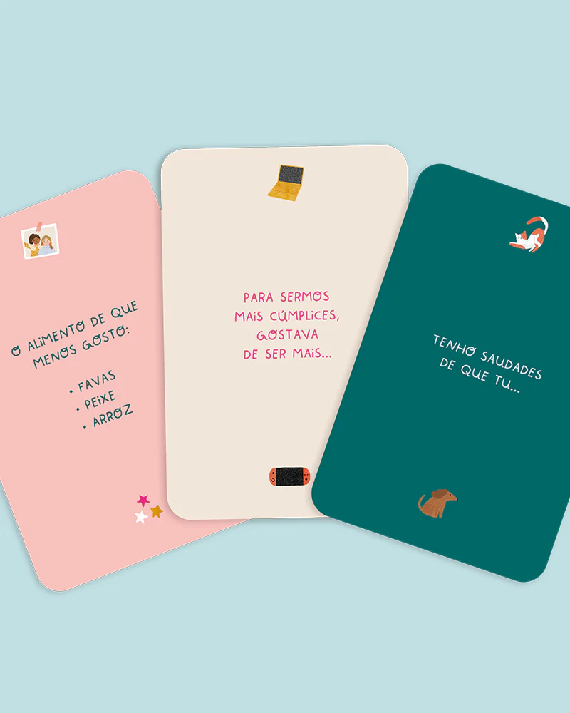 Este kit foi criado para abrir espaço, para ajudar pais e filhos a falarem sobre o que sentem, o que pensam e o que vivem. São perguntas, desafios e quizzes pensados para quebrar o gelo, gerar empatia e fortalecer o vínculo entre quem educa e quem está a descobrir o mundo.