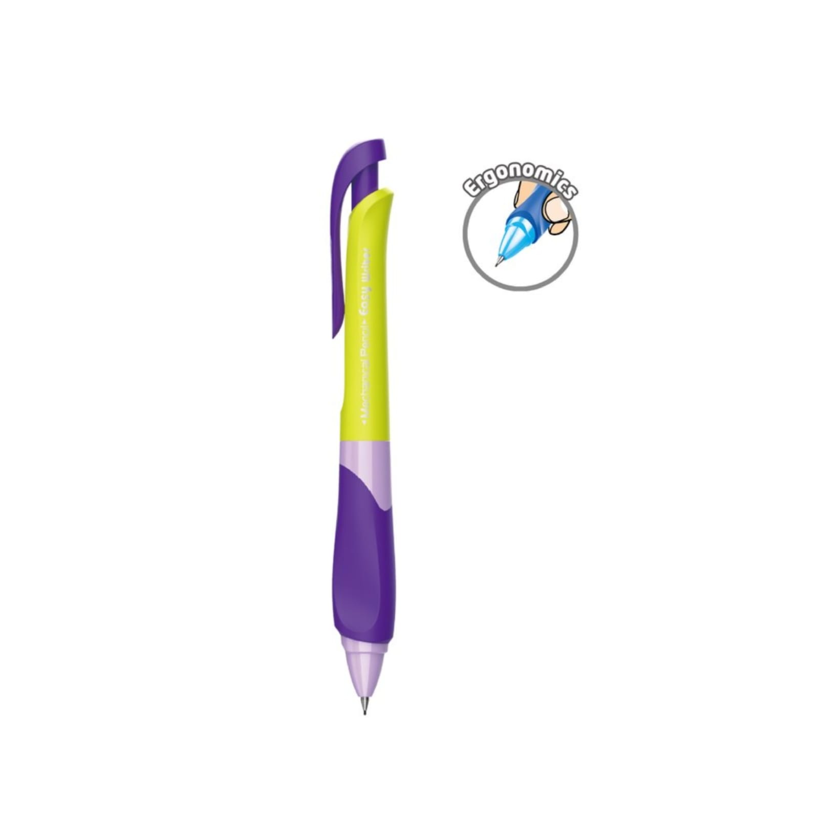 Lapiseira para mina 0.7mm com corpo de plástico macio e ergonomico, com ponta de metal.
