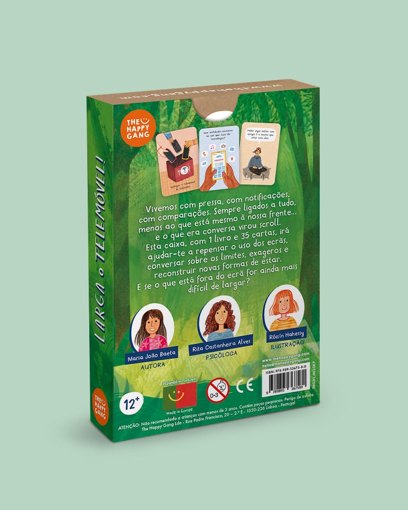 Esta caixa, com 1 livro e 35 cartas, irá ajudar-te a repensar o uso dos ecrãs, a conversar sobre os limites, exageros e a reconstruir novas formas de estar.