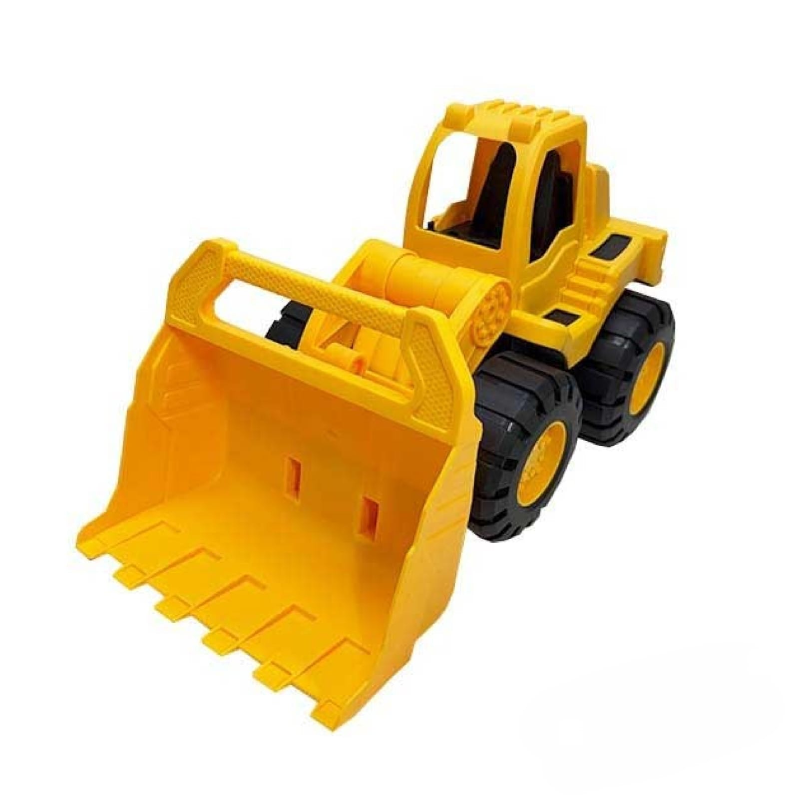 Fabricada em plástico resistente, foi pensada para acompanhar as brincadeiras mais intensas, tanto dentro de casa como no exterior. O braço articulado com pá móvel permite escavar, levantar e transportar materiais, tornando a experiência ainda mais realista.
