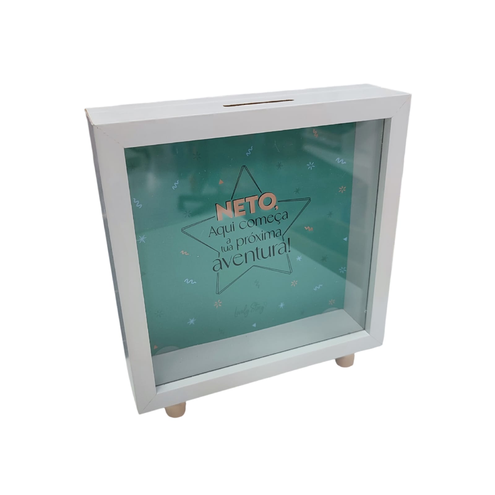 Mealheiro de madeira "Neto aqui começa a tua próxima aventura" | Lovely Story