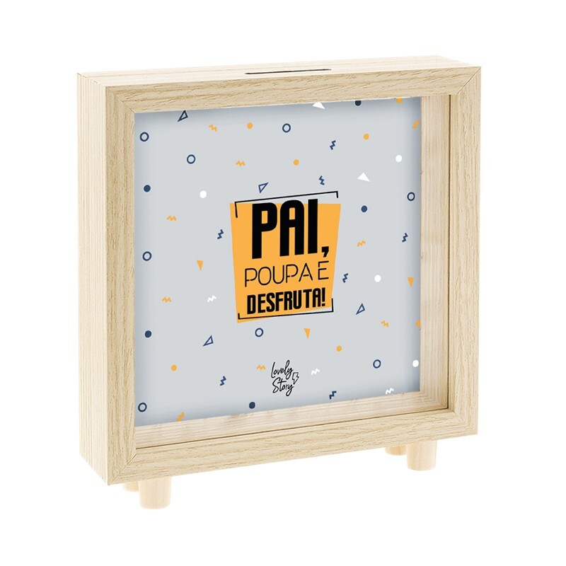Ajude o seu pai a guardar as suas economias com este mealheiro em madeira cheio de estilo e significado!