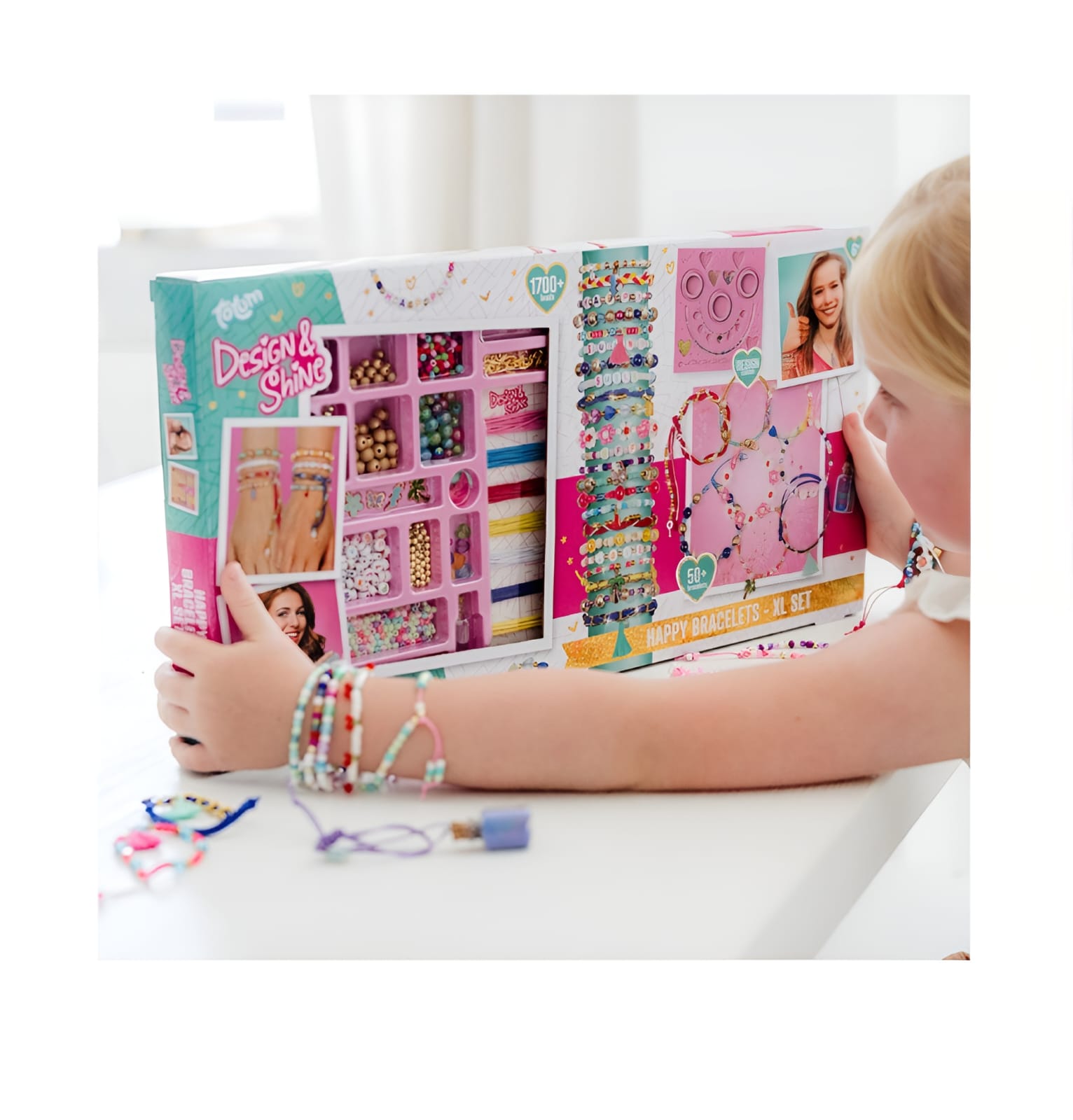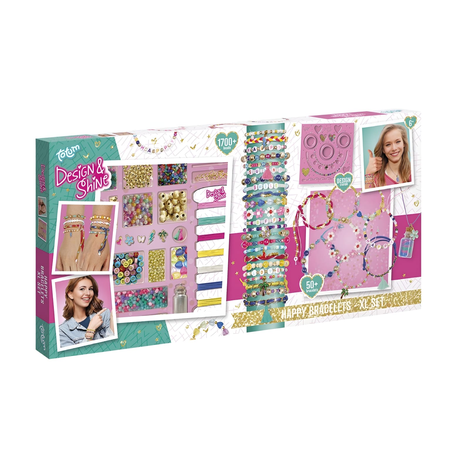 Cria as tuas próprias pulseiras coloridas e cintilantes com o Conjunto XL de Pulseiras Design & Shine Happy! Este conjunto abrangente oferece tudo o que precisas para projetar e criar lindas pulseiras que combinam perfeitamente com o teu estilo.
