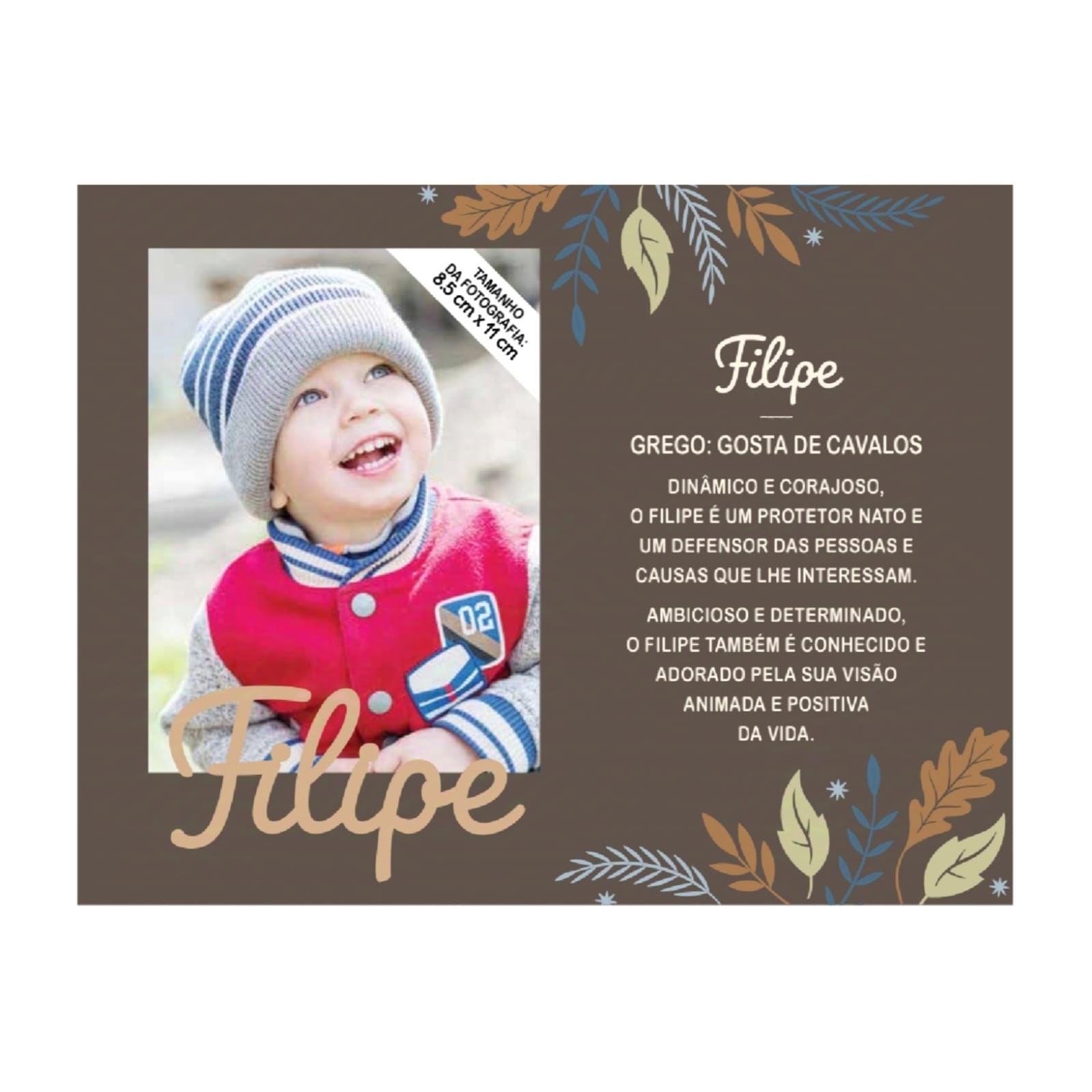 Home Todos os Artigos Moldura de madeira "Filipe" | H&H Moldura de madeira "Filipe" | H&H SKU: h05260044 7,99 € Desconto de %. IVA incluído. Comprar Contactar Adicionar à wishlist Uma moldura personalizada onde o nome de alguém especial ganha vida. Cada nome conta uma história única, revelando o seu significado e origem. Material: madeira Tamanho da foto: 8,5 x 11cm Tamanho da moldura: 18,5cm x 14,1cm Marca H&H Tags presenteprendaespecial Características Partilhar