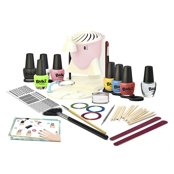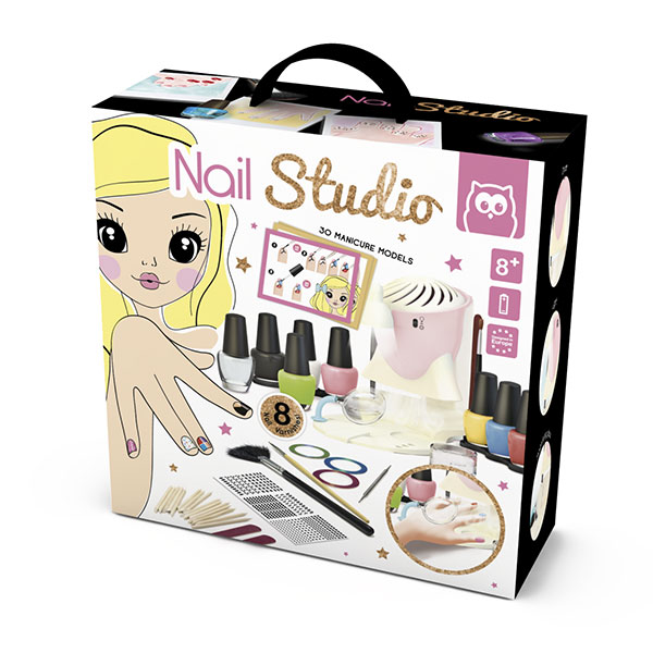 DESCRIÇÃO NAIL ART SALÃO DE MANICURE EUREKAKIDS Este salão de manicure tem de tudo: luz e lupa para pintar as unhas com mais precisão, secador para secá-las mais rapidamente, fichas com 30 desenhos, oito esmaltes e muitos acessórios: stickers para unhas, lixas, pincéis, palito para cutículas... Escolha teu desenho, reproduz passo a passo e consegue uma manicure original e moderna. Características: - Contêm: 8 esmaltes, 2 limas de unhas, 1 ferramenta de lunares, 15 palitos para cutículas, 1 pincel abanico, 1 pincel fino, 1 pote de lantejoulas, 3 rolos de adesivos, 1 folha de autocolantes, 20 fichas de duas caras (30 desenhos de unhas diferentes). - Funciona com 2 pilhas AA (não incluídas).