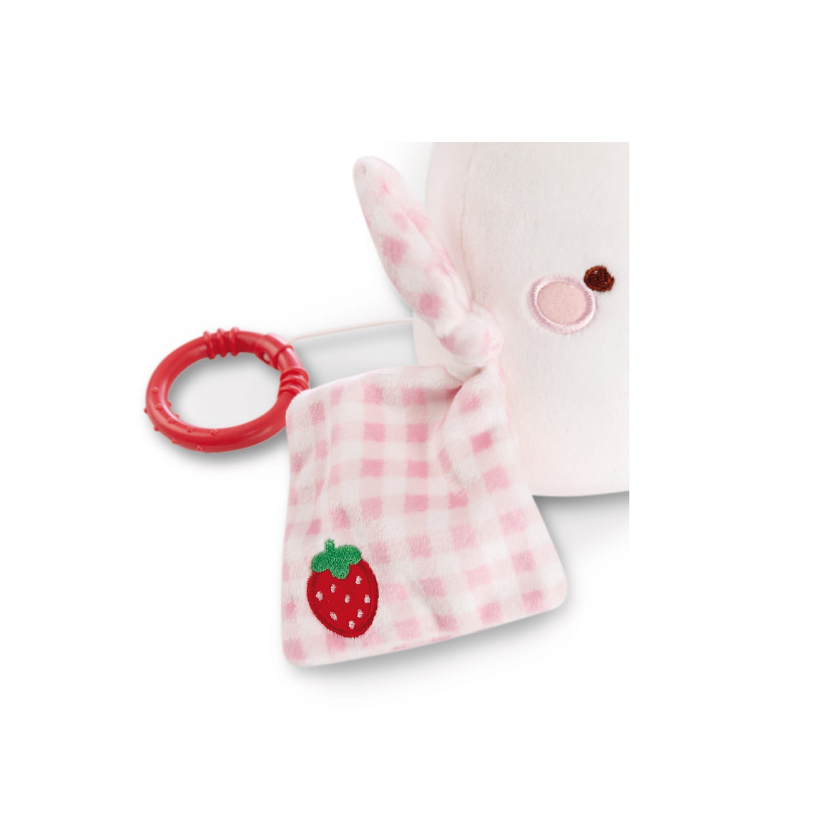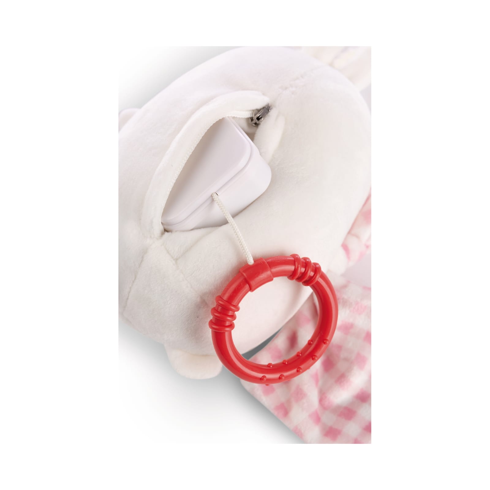 A caixa de música de pelúcia em forma de Molang, o adorável personagem da série de TV de mesmo nome e conhecido nas redes sociais, é um presente indispensável para o nascimento ou batismo. Se você puxar o pequeno anel, que é preso ao corpo macio do Molang de 15 cm de altura por meio de uma corda, o mecanismo musical integrado (e removível) é usado e Baby é gentilmente acompanhado no reino dos sonhos com a Canção de Ninar de Brahms. Molang veste seu cobertor fofinho xadrez rosa e branco com um morango bordado e transforma o quarto das crianças em um lugar de bem-estar. Com a ajuda de duas fitas, a caixa de música pode ser facilmente fixada ao berço, carrinho ou cadeira de bebé. A caixa de música da coleção MOLANG Baby da NICI é um ótimo auxílio para dormir e, ao mesmo tempo, promove as habilidades motoras e sensoriais dos mais novos.