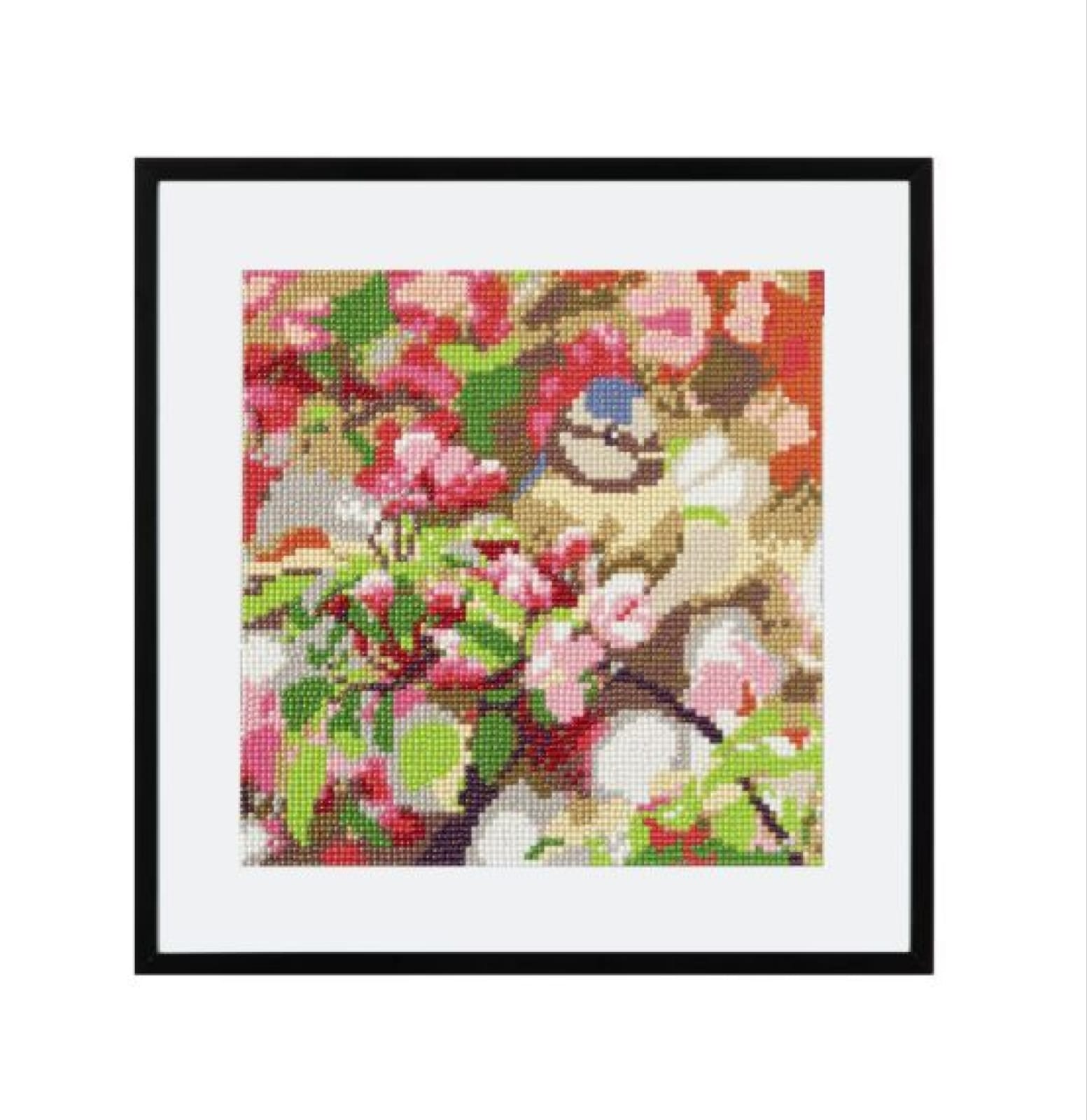Pinta com Diamantes Pássaro em flores 30x30cm