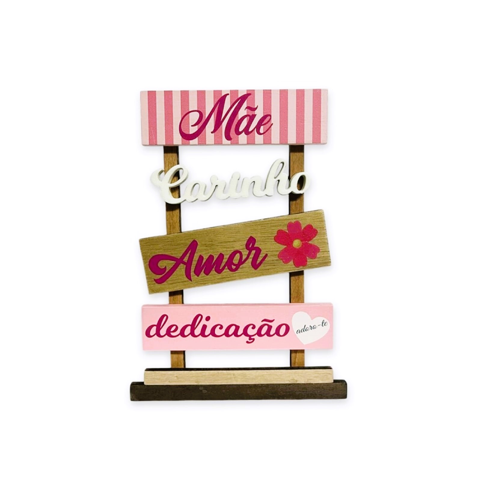 Placa de madeira “Mãe... Carinho, Amor, Dedicação, Adoro-te”